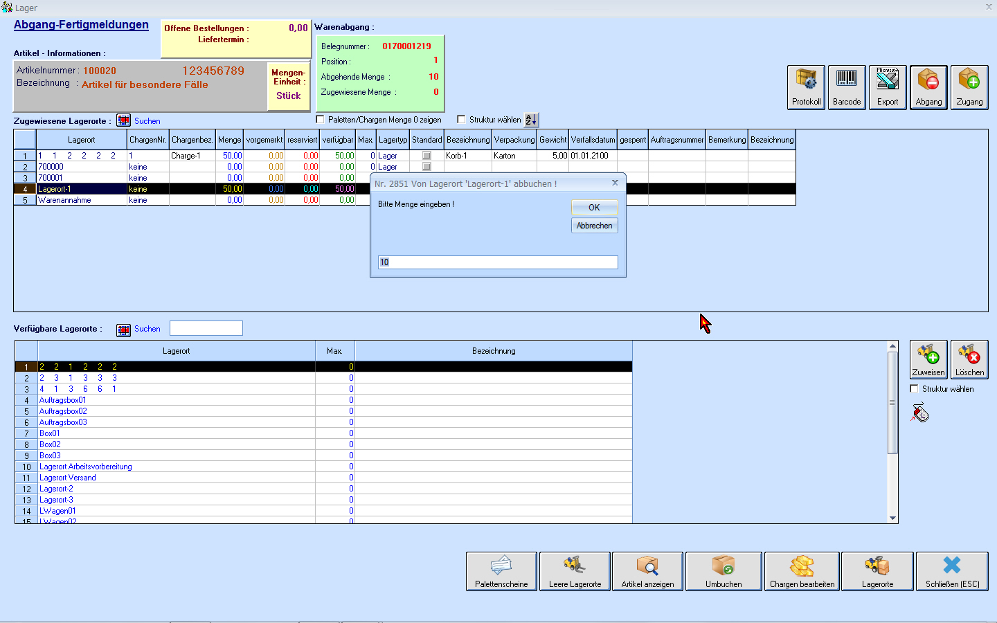 Lagerverwaltung: Abgang-Fertigmeldungen