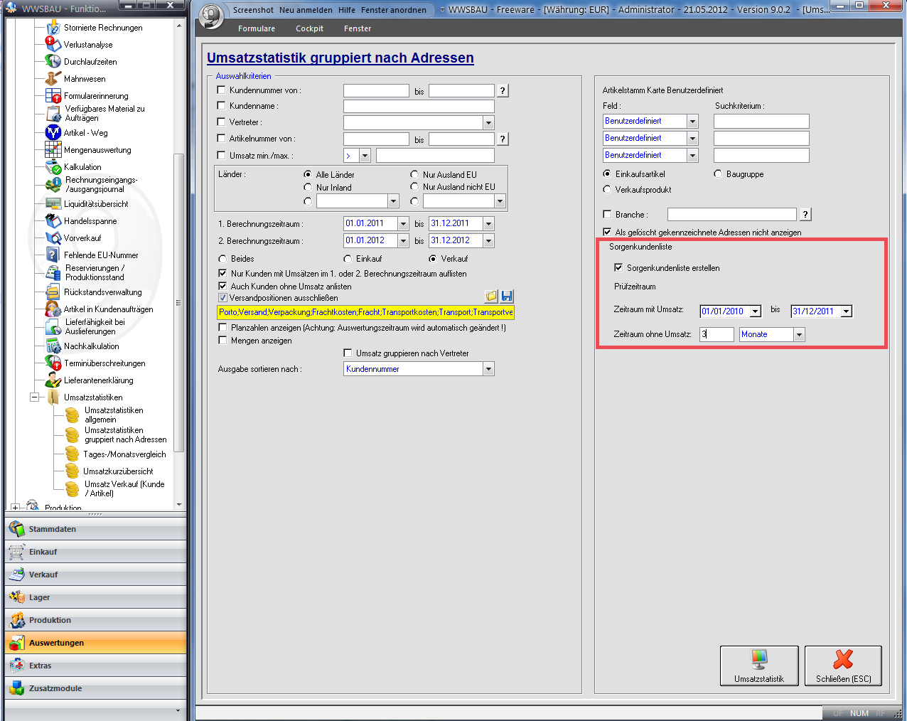 Rahmendaten für die Sorgenkundenliste