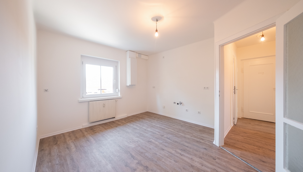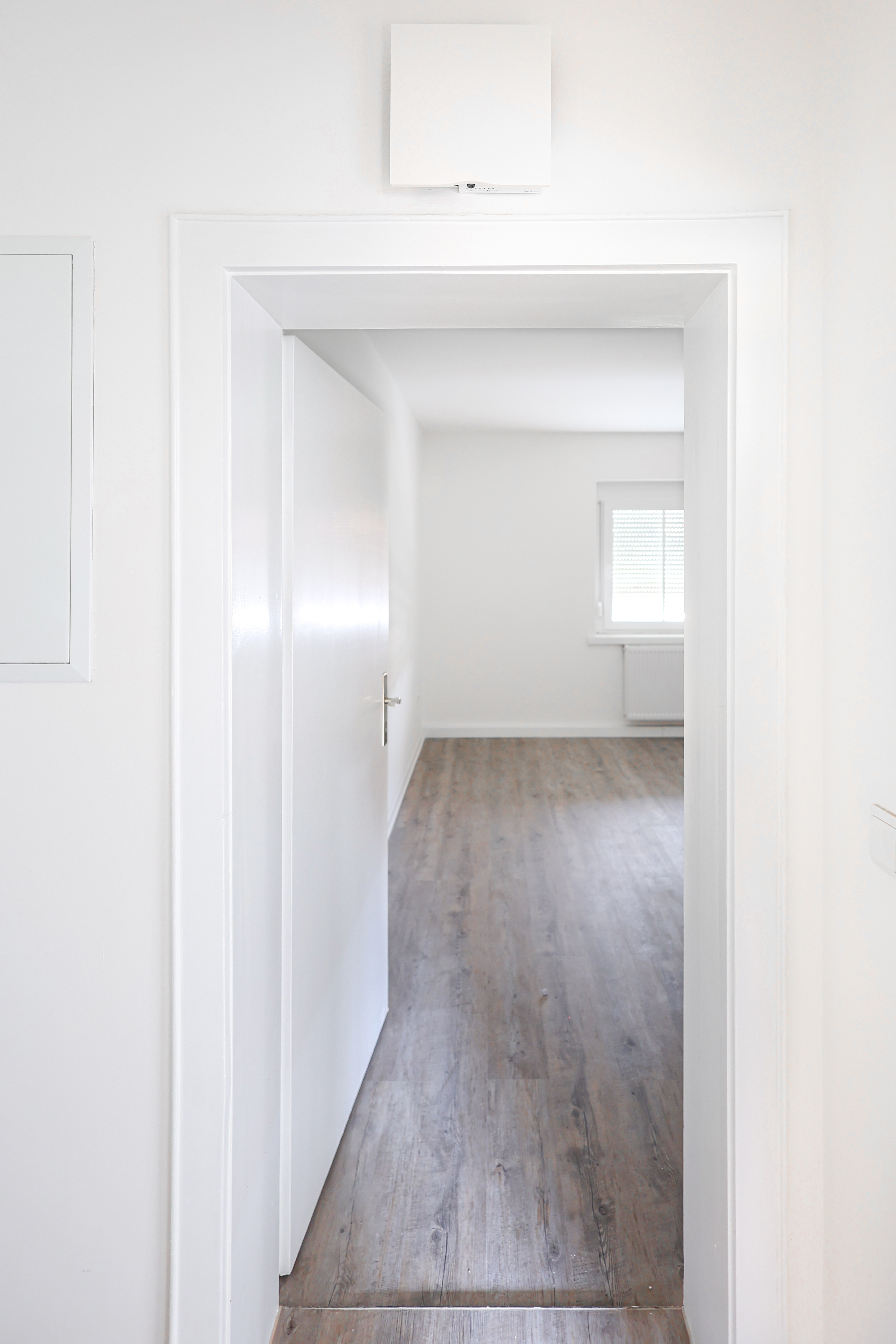 Ideal für die Sanierung: Durch den Einsatz des intelligenten aktiven Überströmers freeAir plus kommt man bei der Lüftung dieser Drei-Zimmer-Wohnung mit nur einer Außenwandöffnung und einer kurzen Abluftleitung ins Bad aus