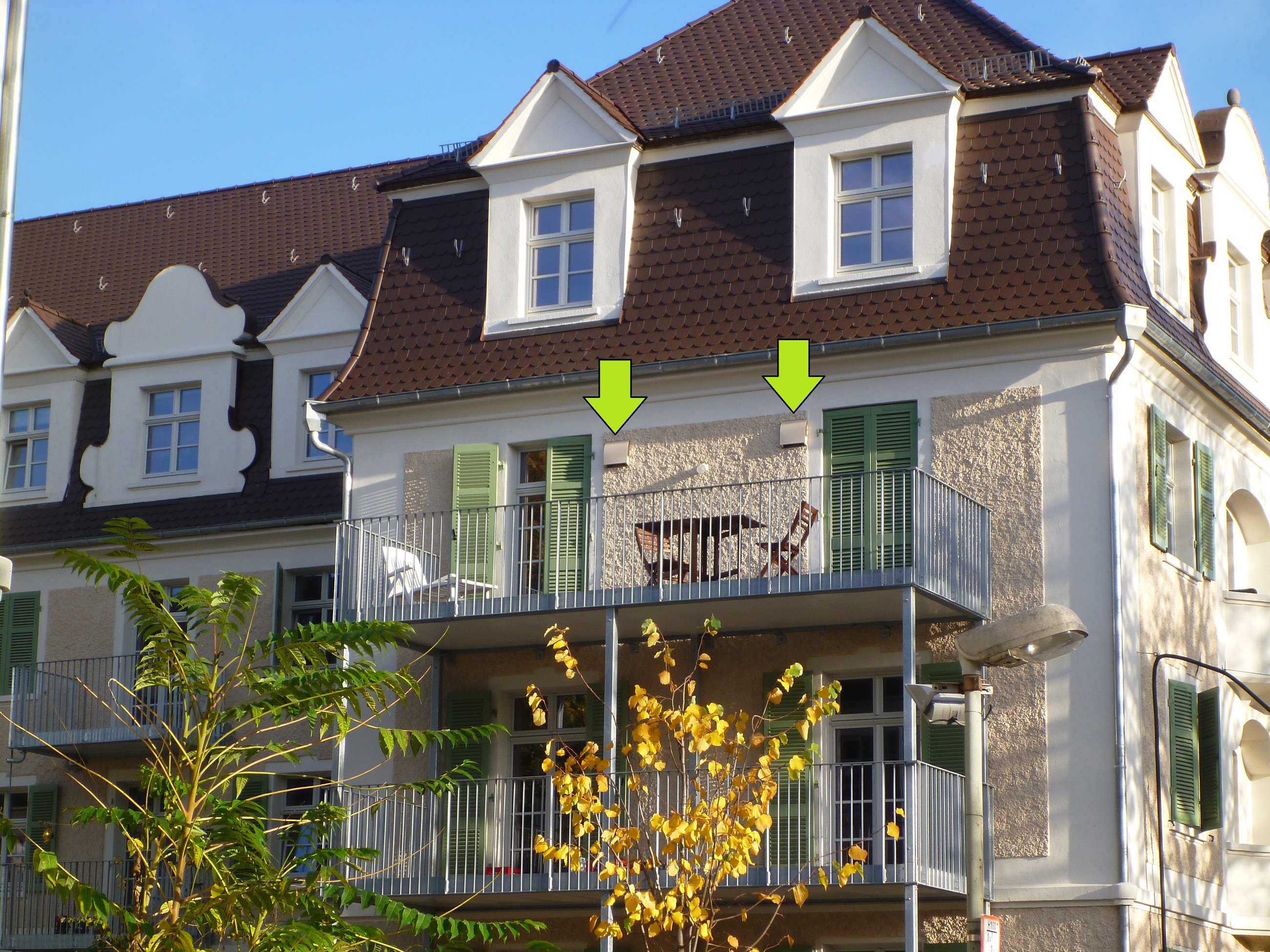 Außenhauben der "freeAir 100" Lüftungssysteme passen sich dezent an die Fassade der Denkmalschutzwohnungen an
