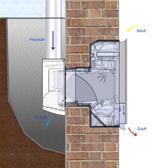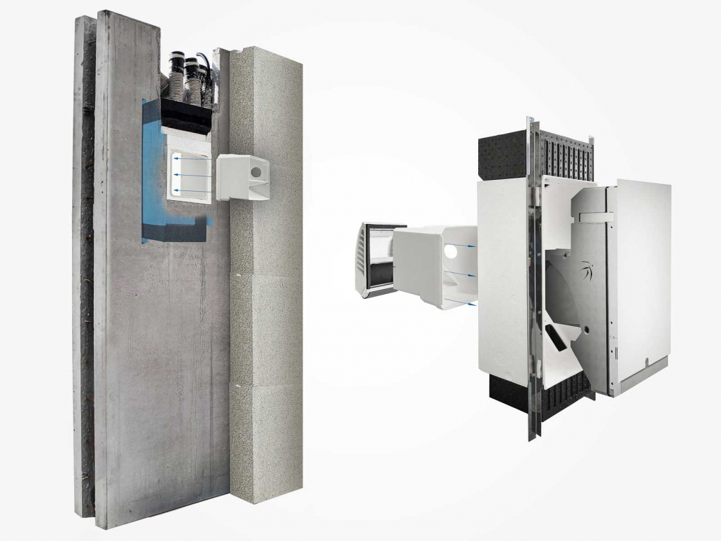 Gut verpackt: Der Mauerkasten des Lüftungssystems eingebaut in der Außenwand