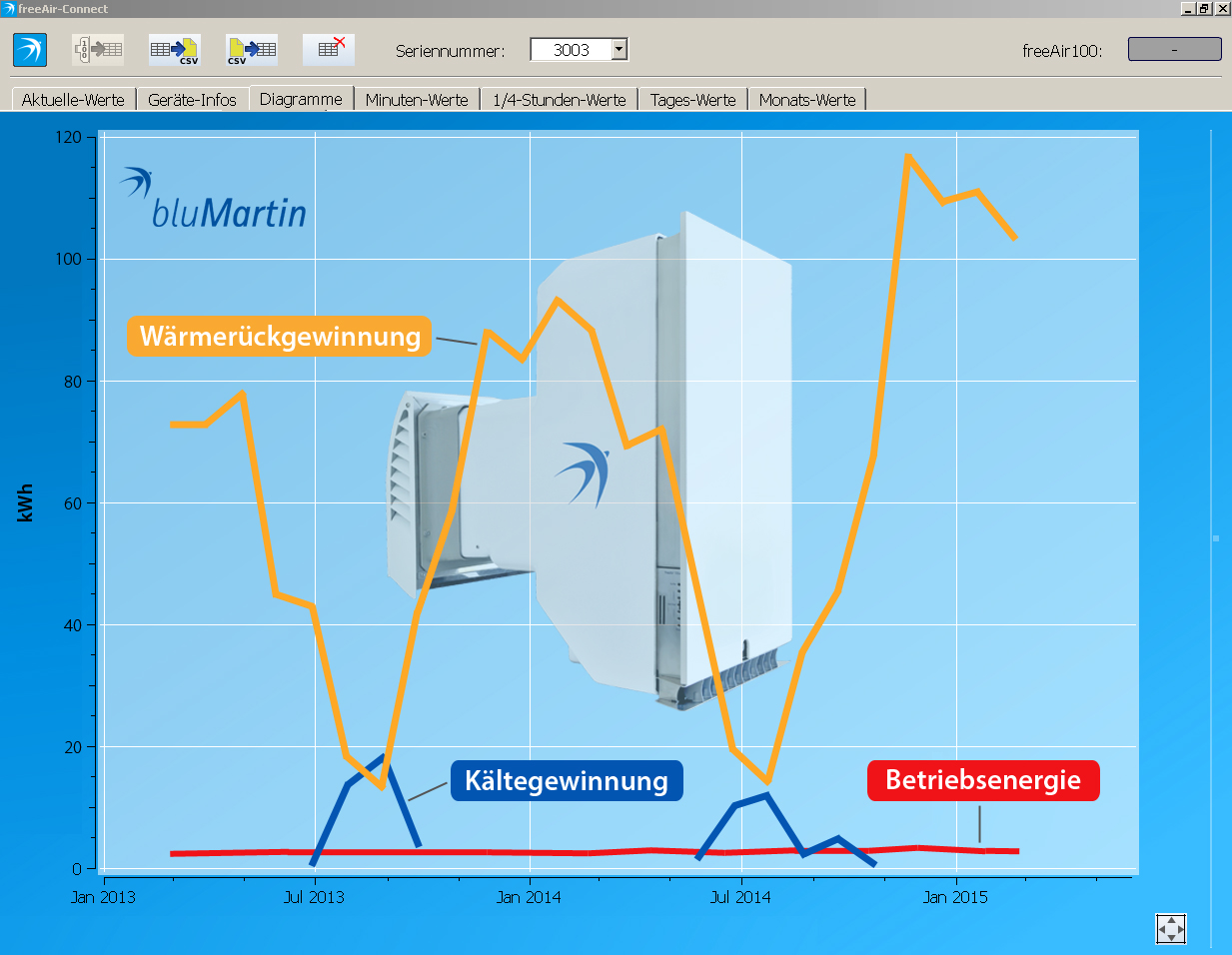 Wärmerückgewinnung des "freeAir 100" im Zeitverlauf am Beispiel eines Einfamilienhauses