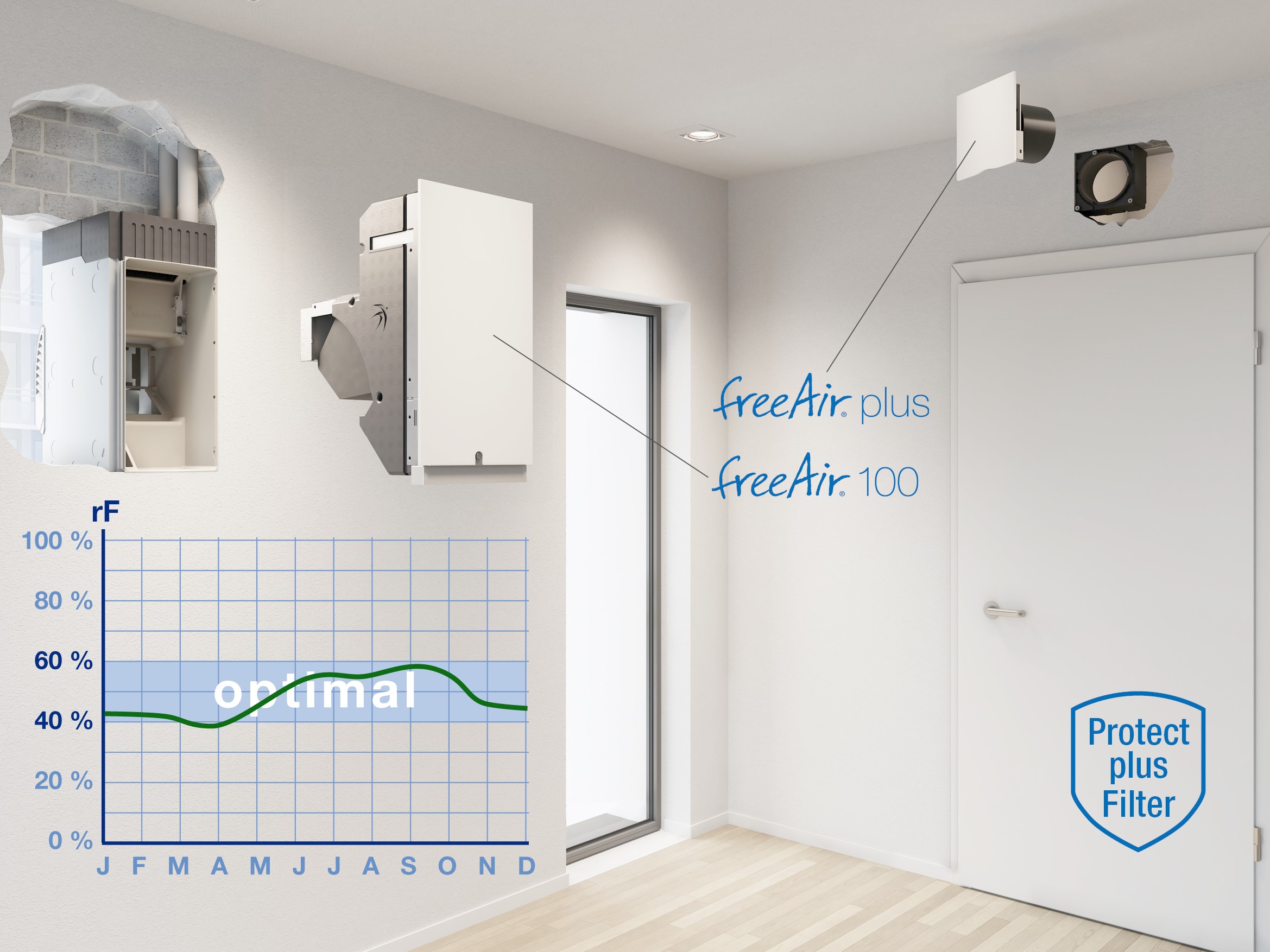 Starkes Team: freeAir 100 unf freeAir plus sorgen für optimale Luftfeuchtigkeit, Bildquelle: bluMartin GmbH