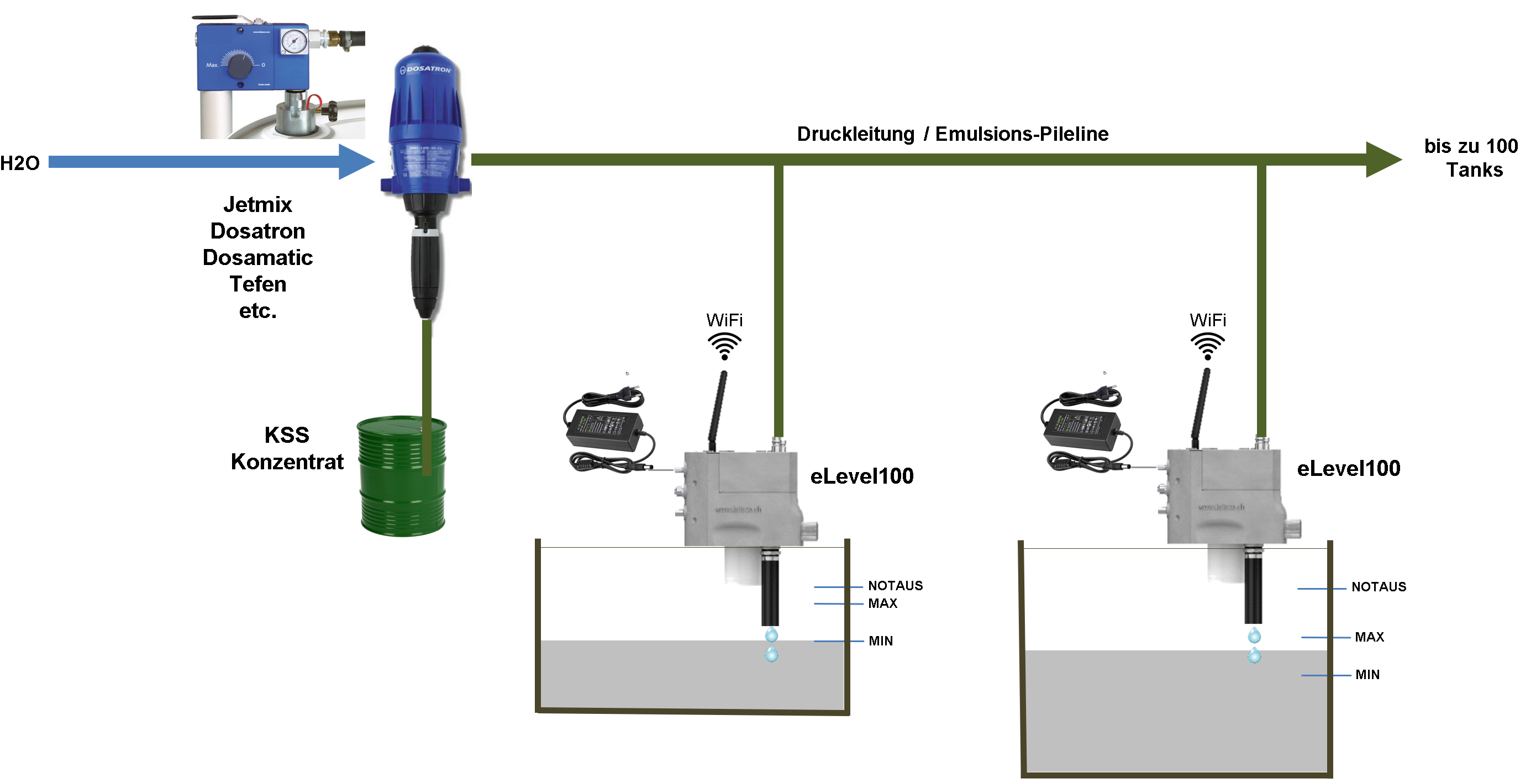 Der eMix1500 ist ein hochpräziser und leistungsfähiger Emulsionsmischer. Der elektronische Kühlschmierstoffmischer ist in der Lage die Nachdosierkonzentration individuell für jeden Tanks zu berechnen und damit die Konzentrationsschwankungen auf ein Minimum zu reduzieren. Kunden profitieren von mehr Prozesssicherheit bei gleichzeitiger Kostenreduktion bei weniger Konzentrat, längere Standzeiten des Werkzeuges und Entlastung der Mitarbeiter.