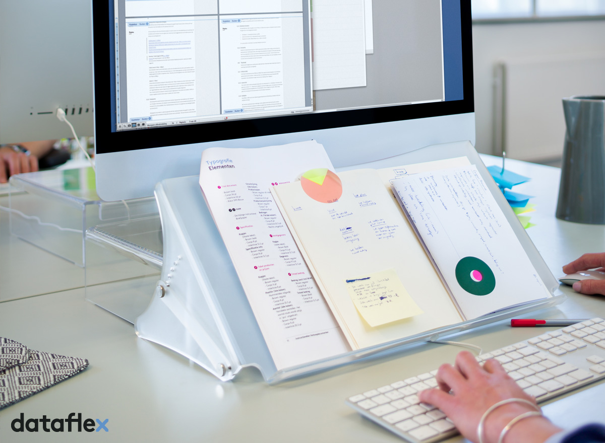Während der Arbeit am Schreibtisch mit dem Computer / Notebook werden oft Dokumente, Unterlagen oder Vorlagen verwendet. Dabei wird der Körper in Folge von falschen Bewegungen belastet, weil die Schreibutensilien über den Schreibtisch willkürlich verteilt werden. Eine übermäßige Belastung des Nackens und der Schultern könnte die Folge sein. Die Dokumentenhalter von den Herstellern Bakker Elkhuizen, Dataflex, Novus oder R-Go Tools sind für ein bequemes und effizientes Arbeiten entwickelt worden. Die Unterlagen bleiben übersichtlich und geordnet im Blickfeld. Durch eine adäquate Positionierung der Dokumentenhalter verkürzt sich der Sehabstand zwischen Dokument, Bildschirm und Tastatur. Das ständige Kopfdrehen entfällt, wodurch Augen, Nacken und die Schultern entlastet werden. „Richtig eingesetzt, stellt ein Dokumentenhalter eine willkommene Erweiterung eines funktionalen Arbeitsplatzes dar. Die Helfer sorgen zudem für mehr Ordnung und Übersichtlichkeit, was folglich die Produktivität und die Konzentration erhöht und das Arbeiten am Schreibtisch in der Firma oder im Homeoffice angenehmer gestaltet“, erklärt Dipl.-Inf. Steffen Groth von der BTS Business Trading Shops GmbH.
