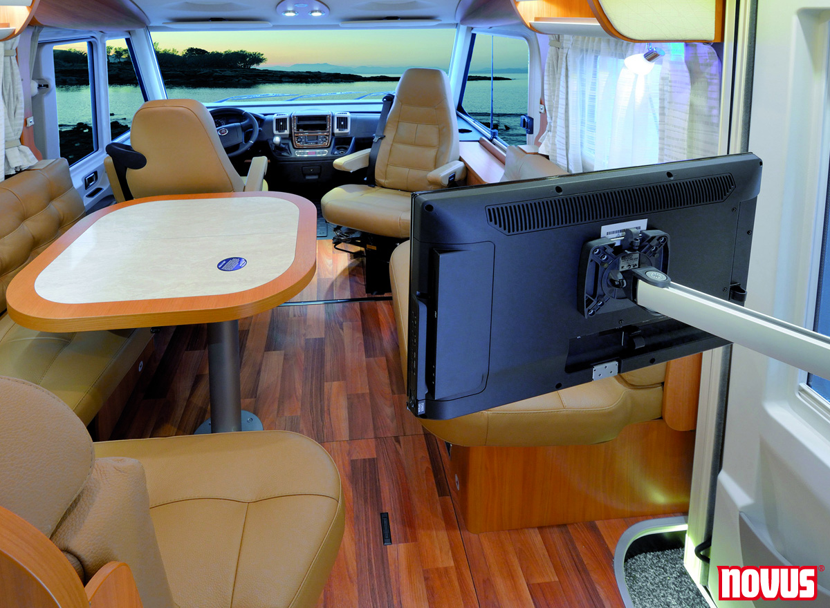 Seit dem 18.05.2020 haben die Campingplätze in Deutschland, unter Einhaltung strenger Hygiene- und Schutzauflagen, wieder geöffnet. Mit einem Wohnmobil sind Urlauber nicht auf Restaurants vor Ort angewiesen und leben nahezu autark. Für Komfort im Wohnwagen / Camper sorgen TV Halterungen. Hersteller, wie beispielsweise Novus oder MonLines, fertigen TV Wandhalterungen und Deckenhalterungen speziell für die Befestigung des Fernsehers / des TV Gerätes in Wohnmobilen. Die TV Halterungen sind schwenkbar und mit Auszugsfunktionen oder Klappfunktionen ausgestattet, um Stabilität und Transportsicherung zu garantieren. Die TV Geräte werden mittels der Fernsehhalterungen in Sideboards, Vitrinen oder Schränken befestigt. Während der Fahrt ist der Fernseher in dem Möbelstück an der Monitorhalterung gesichert.
