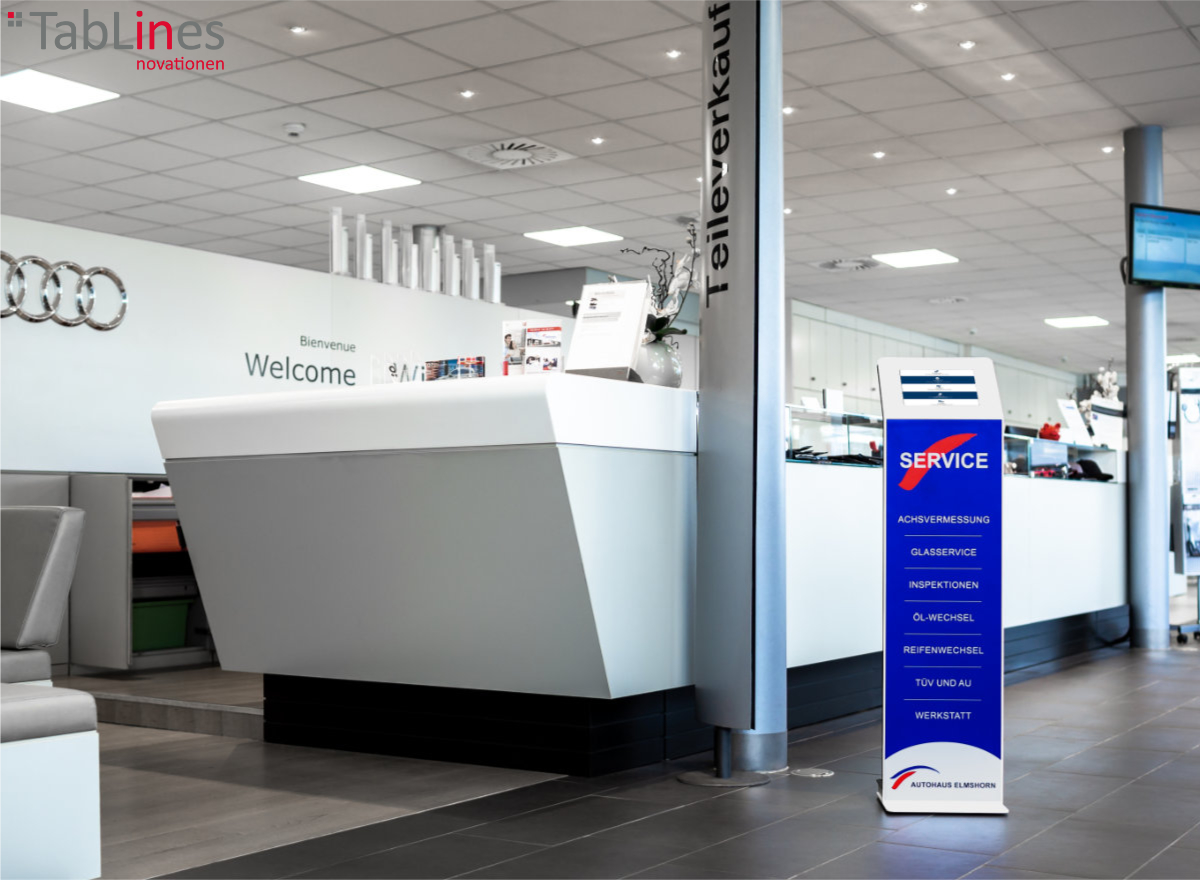 Eine Reihe weiterer praktischer Features unterstützt den reibungslosen Betrieb: So verhindert eine verdeckte Kabelführung im Inneren der Säule das Entstehen von Kabelsalat und damit verbundene Stolpergefahren. Einige Tablet Ständer sind zudem mit einer in die Bodenplatte integrierten Powerbank ausgestattet, um die Einsatzdauer des Tablets zu verlängern. Optional können weitere Halterungen beispielsweise für Scanner oder Drucker sowie Zettelboxen für Flyer an der Tablet Stele angebracht werden.