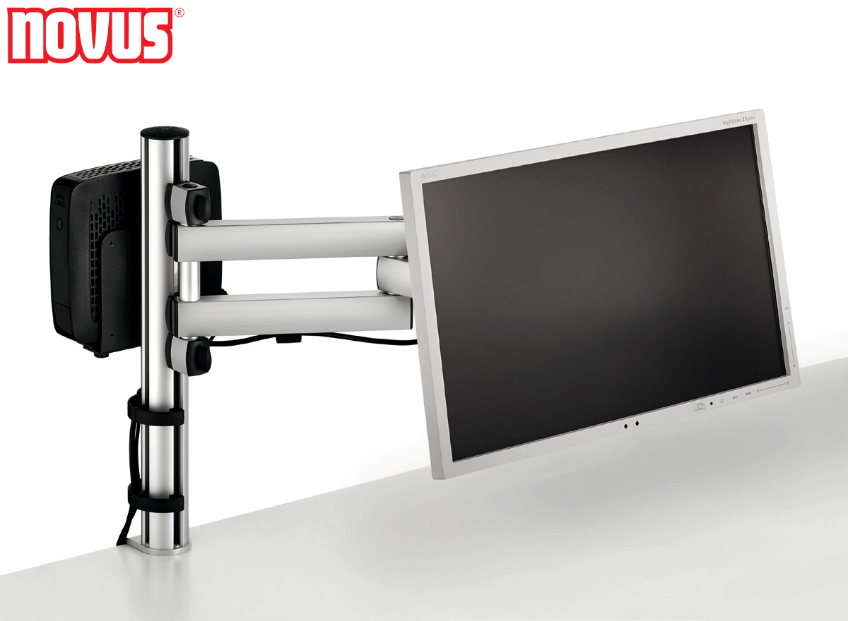 Thin-Clients, die bereits ein zurückhaltendes Erscheinungsbild haben, werden durch die eleganten Halterungen quasi unsichtbar. Montiert an einer Slatwall / Tischtrennwand oder direkt zwischen dem Monitor und der Monitorhalterung verschwinden diese Rechner aus dem direkten Sichtfeld und bieten dennoch ihre volle Funktionalität. PC Tower in üblichen Standardgrößen lassen sich mit den Haltern horizontal oder vertikal, je nach Bauart des PCs, an der Seite des Tisches oder direkt unter der Arbeitsplatte befestigen.