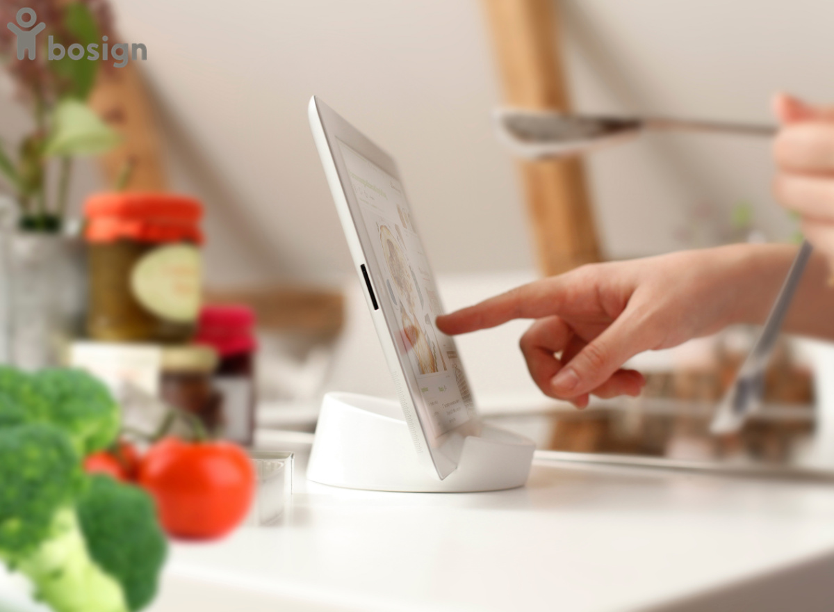 Rezeptbücher werden verstärkt durch digitale Rezepte auf Tablets ersetzt. Im Online Shop monitorhalterung.de findet sich eine große Auswahl an universellen Tablet Tischhaltern. Der Silikon Tablet Tischständer von Bosign zum Beispiel kann stabil auf der Küchenarbeitsplatte aufgestellt werden. Für eine feste Wandinstallation eignet sich die schwenkbare Tablethalterung der Firma Vogel‘s.
