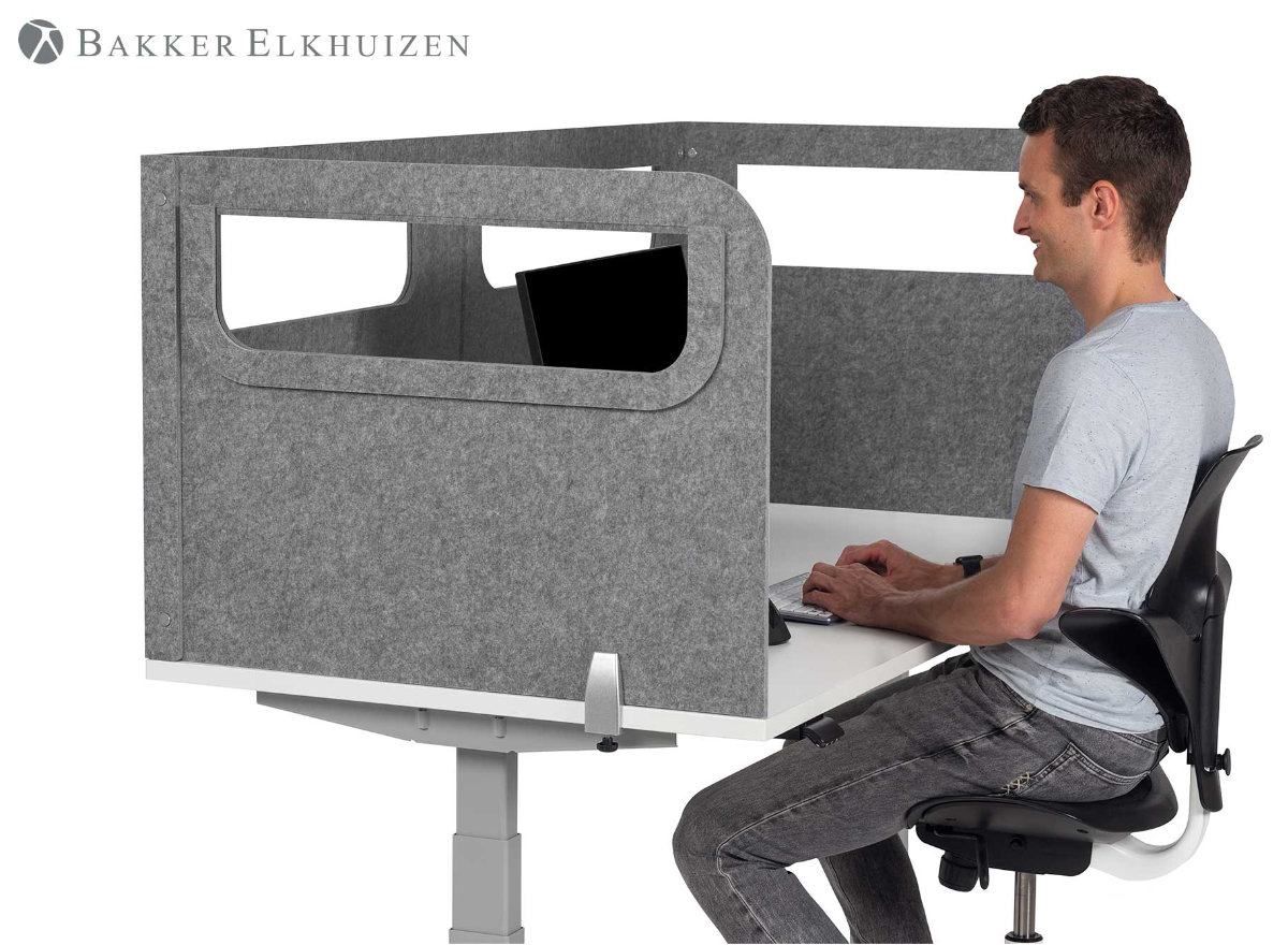 Befinden sich viele offene Arbeitsplätze auf begrenztem Raum, wie beispielsweise im Großraumbüro, herrscht meist ein hoher Lärmpegel und die Privatsphäre der einzelnen Mitarbeiter wird eingeschränkt. Abhilfe schafft die klare räumliche Unterteilung durch eine frontal und/oder seitlich angebrachte Tischtrennwand: So lassen sich Schreibtische nicht nur optisch voneinander abkoppeln, sondern zusätzlich mit einem effektiven Schallschutz versehen. Akustik Tischtrennwände aus umweltfreundlichem, nachhaltigem PET-Filz fördern durch Schalldämmung die Konzentration und Produktivität am Arbeitsplatz. Eingebaute Fenster erlauben dabei weiterhin den Sichtkontakt zum Gegenüber. Die Befestigung der Wände erfolgt schnell und unproblematisch per Tischklemme, durch direktes Anschrauben am Tisch oder mittels eines Standfußes. Die vorhandenen Gerätekabel werden komfortabel durch vorgefertigte Ausstanzungen hindurchgeführt.