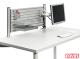 Einige Trennwandsysteme eignen sich über ihre Abgrenzungsfunktion hinaus zur praktischen Organisation des Arbeitsplatzes. Die sogenannte Slatwall besteht aus mehreren übereinander befestigten Schienen, an denen sich verschiedene Büroelemente einfach anbringen lassen. „Monitortragarme, Ablageschalen, Boards, Stifteköcher oder Zettelboxen können für eine individuelle Ausstattung beliebig zusammengestellt werden. Die Organisationswand sorgt damit gleichzeitig für mehr Platz auf dem Schreibtisch“, erläutert Dipl.-Inf. Steffen Groth, Geschäftsführer der BTS Business Trading Shops GmbH.