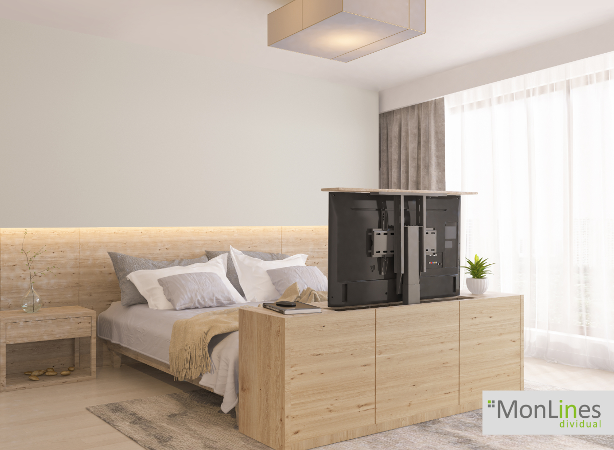 Nahezu jedes TV Gerät ist mit einem Standfuß ausgestattet. Doch nicht immer sieht ein aufgestellter Flachbildschirm gleichzeitig elegant aus und erfüllt die Ansprüche der Verbraucher. Zudem ist es in Haushalten mit Kindern und Haustieren sicherer, das Fernsehgerät in einem Möbelstück zu integrieren oder fest an die Wand bzw. Decke zu installieren. Mit einem integrierten TV Lift können Fernseher bis 85 Zoll per Knopfdruck mit der Fernbedienung aus Möbeln, aus dem Boden, von der Wand oder von der Decke ein- und ausgefahren werden. TV-Lift Systeme sind platzsparend und stehen für Komfort. Sie vervollständigen anspruchsvolle und repräsentative Raumkonzepte und werden mittels der Fernsehhalterungen in Sideboards, Vitrinen oder Schränken befestigt. Mit Hilfe von elektrischen Wandhalterungen und Deckenhalterungen wird nicht nur Platz gespart, sondern dem Raum auch mehr Schlichtheit verliehen. Zum Beispiel lassen sich ungenutzte Dachschrägen oder Dachbalken dafür nutzen.