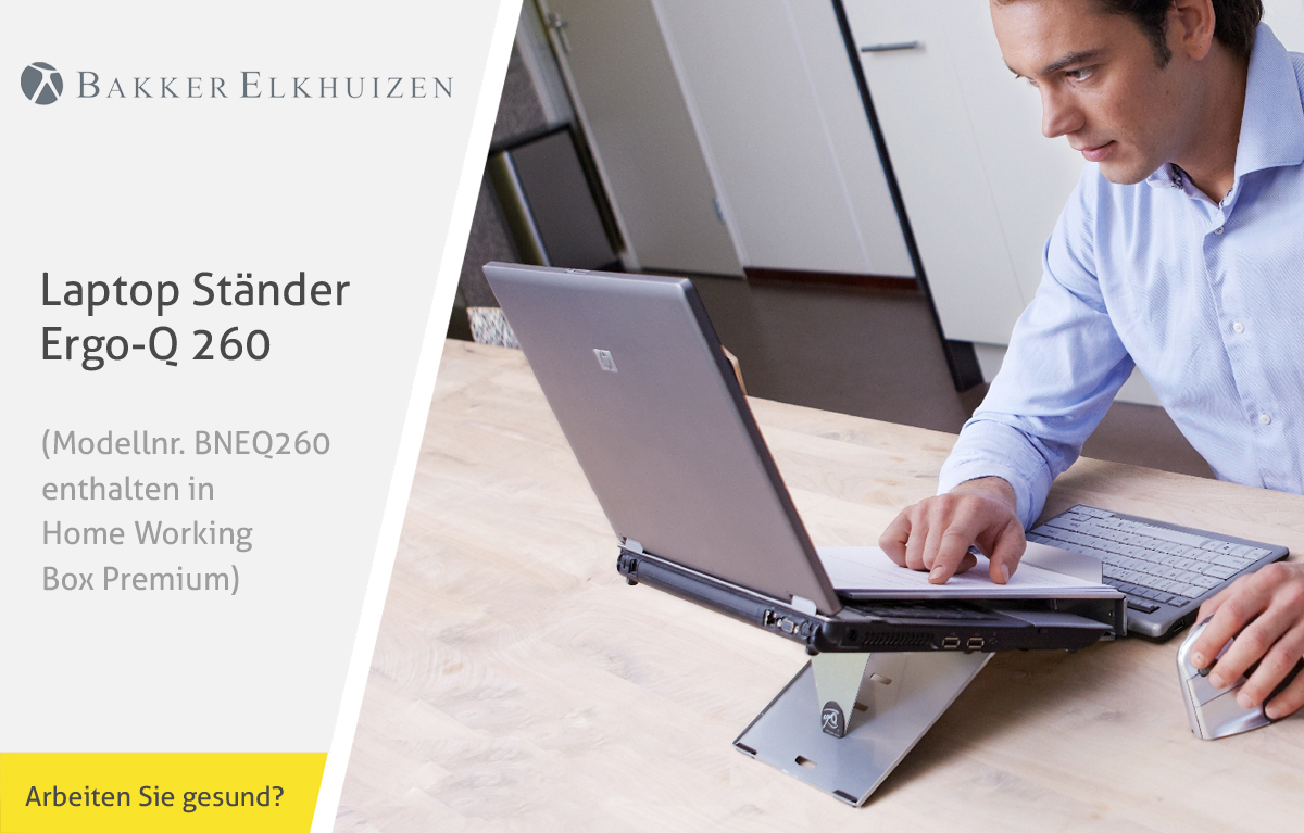 Für den Arbeitsplatz zuhause bietet der niederländische Spezialist für ergonomische High-End-Lösungen BakkerElkhuizen jetzt eine praktische Rundumlösung in Form der Home Working Box an. Das Komplettpaket steht in drei Ausführungen zur Auswahl und umfasst jeweils einen Laptopständer, eine ergonomische Tastatur sowie ein antibakterielles Mauspad. In den „Plus“-Varianten der Homeoffice Boxen ist zusätzlich eine ergonomische Maus enthalten.