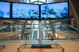 Die Nutzung der Monitore bietet ein visuelles Erleben der möglichen Folgen des Klimawandels aber auch die Darstellung der Schönheiten dieser Erde, deren Intaktheit in Gefahr ist.