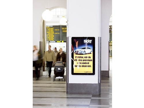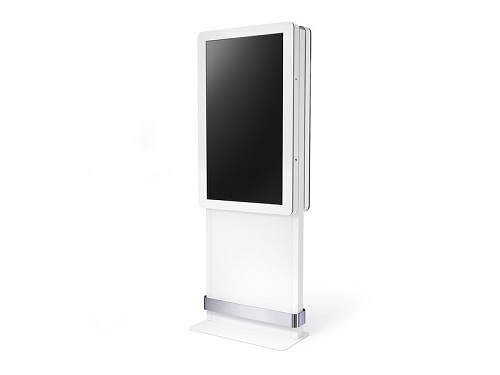 Diese Ausstattung und Sicherheitsmerkmale finden sich auch bei der Stele von SMS, die zusätzlich einen Trittschutz hat und für ein oder zwei Displays bestellt werden kann. Zwei Displays, Rücken an Rücken, sind besonders geeignet für Installationen frei im Raum. Besucher können in beiden Richtungen auf besondere Angebote hingewiesen werden und News wahrnehmen, beispielsweise in Einkaufszentren, Bahnhöfen, etc.