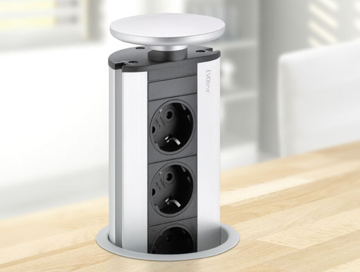In der Küche kann es schnell eng werden, wenn man ein aufwendiges Essen kocht. Wo es auf jeden freien Zentimeter Platz ankommt, sind Geräte, die nicht im Weg stehen, Gold wert. Die sowohl vertikal als auch horizontal versenkbare Steckdosenleiste EVOline Port Cuisine mit ihren drei Anschlüssen ist einer dieser praktischen Platzsparer!