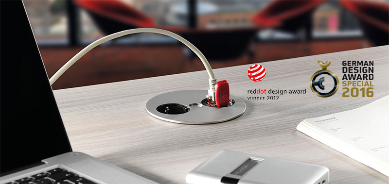 Die Bachmann TWIST Einbau Steckdose gewann bereits unter anderem einen der renommiertesten Design Awards, wie den Good Design Award 2014, den Focus Open 2014 Silver, den Red Dot Product Design Award 2012, Interior Innovation Award 2014, den Best Office Award der Fachmesse Office Next Moscow 2014 und zu guter Letzt den Interzum Award - Intelligent material & design 2015.