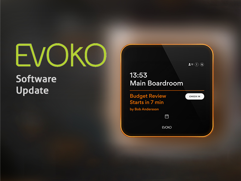 (pressebox) (Wedel, 05.11.2018) Evoko hat ein neues Firmware-Update für das Evoko Liso bereitgestellt. Seit 2016 ist der Evoko Liso auf dem Markt und vereinfacht die Buchung von Besprechungs-/Konferenzräumen. Mit dem Update v2.0 wurde das Raumbuchungssystem noch weiter an die Anforderung der Kunden angepasst und die Konferenztechnik weiter verbessert.