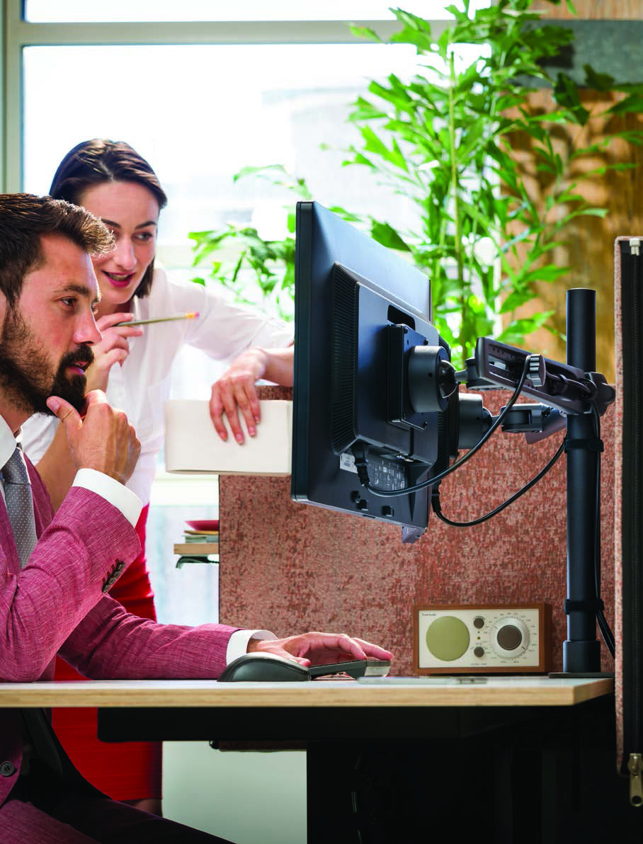 Die Monitorarme der Viewmaster Kollektion verfügen alle über einen Schwenkarm und lassen sich dadurch individuell und ergonomisch auf den Nutzer ausrichten. Eine Gasdruckfeder sorgt für eine einfache Höhenverstellbarkeit. Die Monitorhalter sind mit der VESA MIS-D Norm (75x75, 100x100) ausgestattet und verfügen über ein Kabelmanagement. Die Viewmaster Monitorhalterungen können am Schreibtisch (per Tischklemme oder als Durchtischlösung), an der Wand oder an einer Schiene befestigt werden.