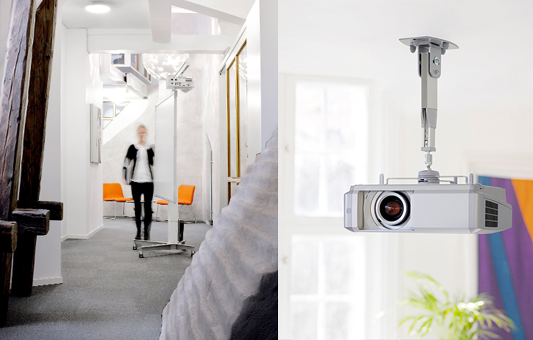 Der Online-Shop projektorhalterung.de bietet eine große Produktvielfalt an Beamerhalterungen unter Berücksichtigung des Einsatzzweckes und der räumlichen Gegebenheiten an. Dazu gehören Deckenhalterungen, Traversenbefestigungen, Wandhalter mit starrem oder schwenkbarem Arm sowie Projektorwagen. Elektrische Deckenlifte für Projektoren können beispielsweise per Fernbedienung ausgefahren werden und passen sich dem Raumkonzept optisch an. Auf Knopfdruck integrieren sie sich einfach, schnell und leise in die Raumdecke ein. Die Halterungen mit Diebstahlschutzgehäuse eignen sich ideal für den Gebrauch in öffentlichen Einrichtungen, Bildungseinrichtungen oder für den Einsatz bei Messen.