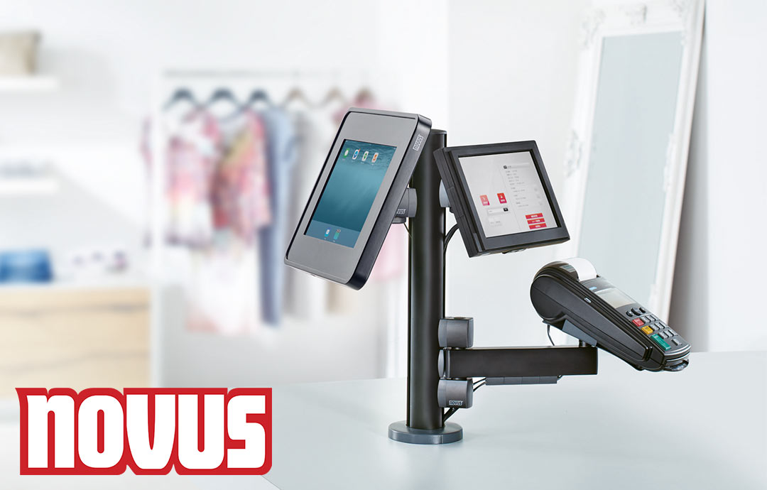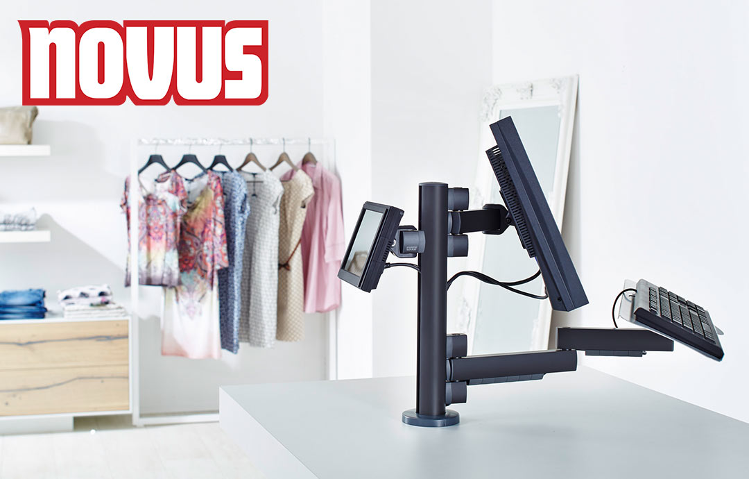 Das Novus Retail System ist eine funktionale und modulare Lösung, welche auf die individuellen Bedürfnisse der Händler zugeschnitten ist. Die Novus Retail Produkte lassen sich modular kombinieren, so dass für jedes Geschäft individuelle Lösungen entstehen. Ein kompaktes Kassensystem spart wertvollen Platz und gewährleistet Benutzerfreundlichkeit. Die Halterungen und Befestigungssysteme sind drehbar, schwenkbar und neigbar für unterschiedliche Blickwinkel beim Kassieren oder bei der Kundenberatung. Kunden-Monitor, Touch-Kasse, EC-Gerät oder ein Bon-Drucker werden durch Gelenkhalterungen / Tragarme an einer Säule befestigt. Die Säule kann an einem Tisch (Point of Sale) mit einer Durchschraubbefestigung oder mit einem Standfuß montiert werden. So können die verschiedenen Komponenten wie beispielsweise eine Monitorhalterung oder Tastaturhalterung in die Höhe platziert werden.