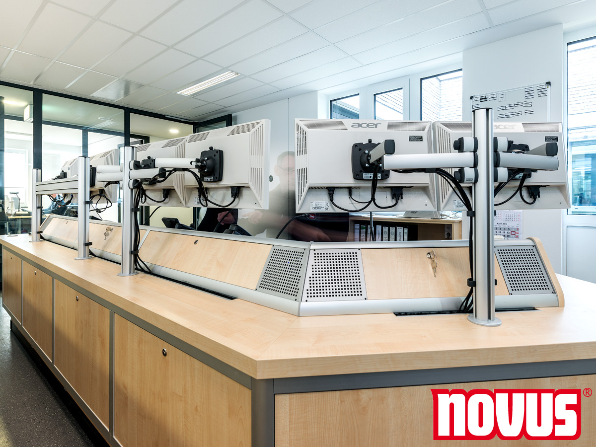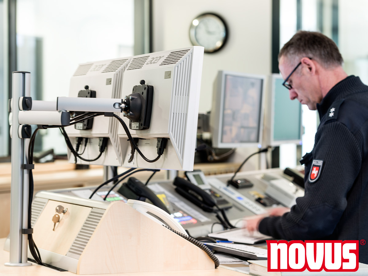 Das Herzstück einer Polizeistation ist die Leitstelle. Hilfegesuche werden entgegengenommen, bewertet, Streifenwagen entsandt und der Einsatz bis zum Abschluss begleitet. Für die Koordination der verschiedenen Einsätze kommen mehrere Monitore zum Einsatz. Damit diese ergonomisch, platzsparend und sicher positioniert werden können, „sind Mehrfach-Monitorhalter das passende Equipment für Leitstellen und Kontrollräume“, so Dipl.-Inf. Steffen Groth von der BTS Business Trading Shops GmbH. Die Monitorhalter können am Tisch per Tischklemme, Durchtischlösung sowie in einer Systemschiene befestigt oder als Videowall an der Wand montiert werden. Modulare Halterungssysteme erlauben zudem eine weitere Anbringung von Leuchte und Tablet an einer Tragsäule einer Monitorhalterung. Die dazugehörigen Kabel werden nahezu unsichtbar durch entsprechendes Kabelmanagement verlegt.
