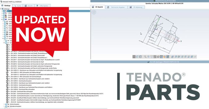 (pressebox) (Augsburg, 25.11.2020) Within the CAD software TENADO® even more standard and purchased parts from over 800 manufacturer-verified digital product catalogs based on the eCATALOGsolutions technology of CADENAS are now available thanks to the optimized add-on TENADO PARTS. Users find million components in TENADO, which can integrate it directly into their respective CAD construction. Among them a multiplicity of DIN, ANSI or EN standard parts or components of well-known international manufacturers. The deep integration saves drawing and design work, reduces errors and accelerates the subsequent procurement process.