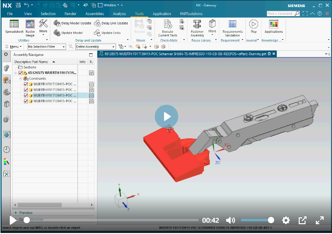 (pressebox) (Augsburg, 18.02.2021) Adolf Würth GmbH & Co. KG expands their 3D CAD product catalog, based on CADENAS technology, by adding important kinematic information to their Grass Tiomos 110° click-on hinges and their Grass Dynapro soft-close undermount slides in order to fulfill the customer requirements regarding furniture planning.