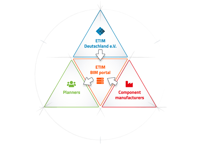 For the manufacturer-independent planning data to be integrated quickly into building plans, the new ETIM BIM portal acts as an interface between all involved parties: ETIM and the ETIM standard, the component manufacturers with their BIM data, and the electrical planners and architects integrating the 3D CAD data directly into their general building designs.