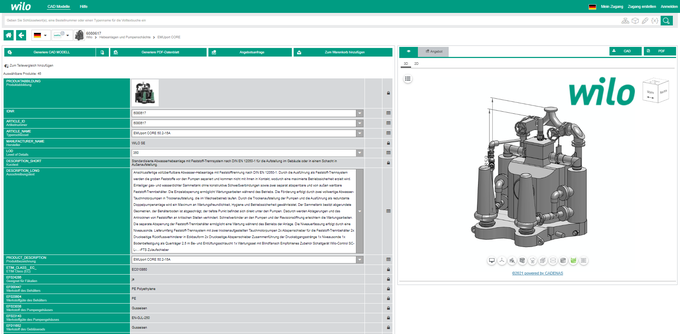 (pressebox) (Augsburg, 03.08.2021) it einem Produktportfolio die Anforderungen internationaler Märkte im Zeitalter der Digitalisierung gleichermaßen abdecken zu können, stellt Wilo SE wie jedes andere Unternehmen vor vielfältige Herausforderungen. Um mit seinen hochwertigen Komponenten auch digital bahnbrechende Produkterlebnisse zu schaffen und sich damit vom Wettbewerb abzuheben, stellt Wilo weltweit rund um die Uhr intelligente 3D CAD & BIM Modelle online zur Verfügung, die auf der Technologie von CADENAS basieren.