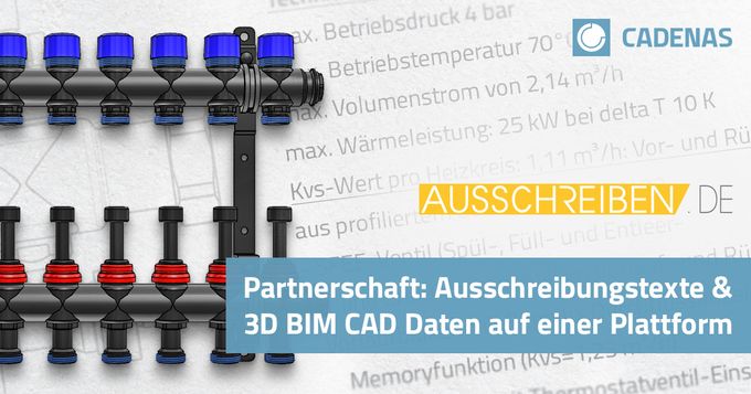 (pressebox) (Augsburg, 04.05.2022) Über 1 Million Ausschreibungstexte und zusätzliche Produktinformationen stehen auf dem Onlineportal AUSSCHREIBEN.DE zum Download bereit. Durch die neue Technologie-Partnerschaft von CADENAS und AUSSCHREIBEN.DE können Bauprodukte jetzt als anschauliche 3D Grafik angezeigt und zum kostenlosen Download in verschiedenen nativen und neutralen CAD-Formaten angeboten werden. Die neue Kooperation vereinfacht Prozesse bei der digitalen Gebäudeplanung und bietet sowohl Planern wie Bauproduktherstellern viele Vorteile.