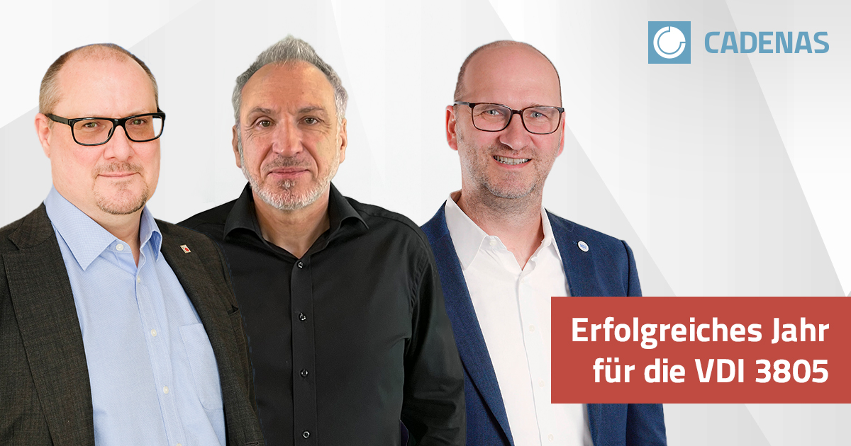 CADENAS hat Frank Jansen, Geschäftsführer der VDI-Gesellschaft Bauen und Gebäudetechnik, sowie Thomas Müller, Geschäftsführer der Arbeitsgemeinschaft BIM, Gebäudeinformation und Elektrotechnik im VDMA zum Interview gebeten, gemeinsam mit Karsten Spieß, Head of Data Management MEP/BIM bei CADENAS. Karsten Spieß unterstützt die Arbeit des VDMA in der Position des Obmanns verschiedener Arbeitskreise in der AG BIM und dem VDI Gremiumsausschuss VDI 3805 ELT und GA als stellvertretender Vorsitzender. Die Arbeitskreise arbeiten aktiv an der VDI 3805 und erweitern die Richtlinie um weitere Richtlinienblätter. Auf diese Weise helfen VDMA und CADENAS dem VDI maßgeblich, die VDI 3805 weiterzuentwickeln.