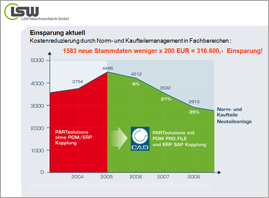 2005 implementierte CADENAS, nach dem Upgrade von PARTsolutions Content auf PARTsolutions Professional, eine Schnittstelle zwischen PARTsolutions Professional und der Unternehmenssoftware SAP, um eine optimierte und einkaufsgesteuerte Stücklistenverwaltung der Norm- und Kaufteile zu erreichen. Durch die Kopplung zur SAP Materialwirtschaft wurden bei LSW 35% weniger Kaufteile neu angelegt und somit erzielten sie schon nach drei Jahren eine Einsparung von rund 315.000 EUR.