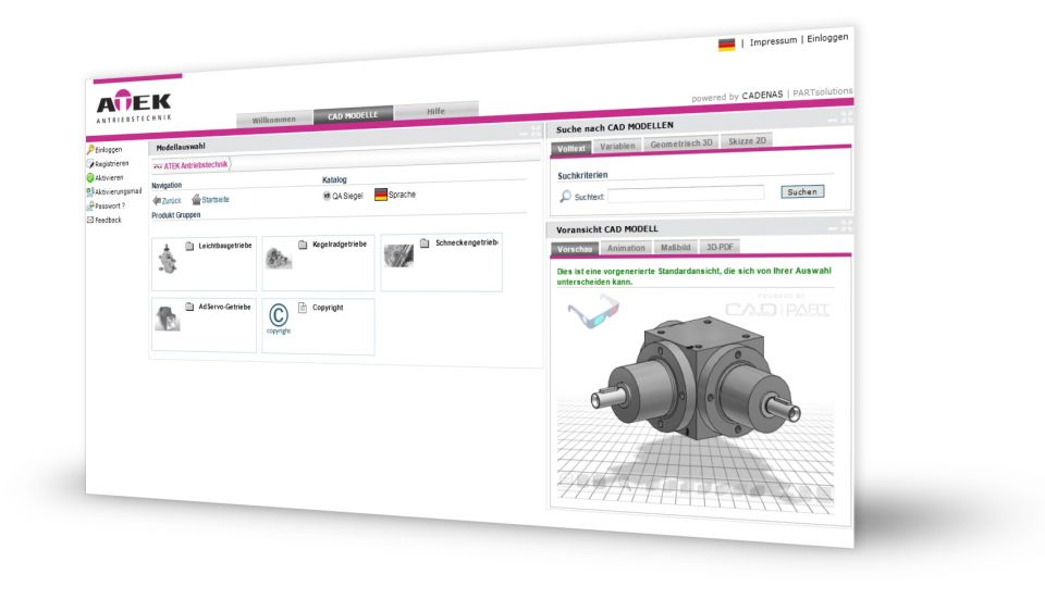 Das 3D CAD Downloadportal von ATEK bietet darüber hinaus neuartige Selektionsmöglichkeiten, mit denen Nutzer einfach und schnell das gewünschte CAD Modell eines Getriebes auffinden.