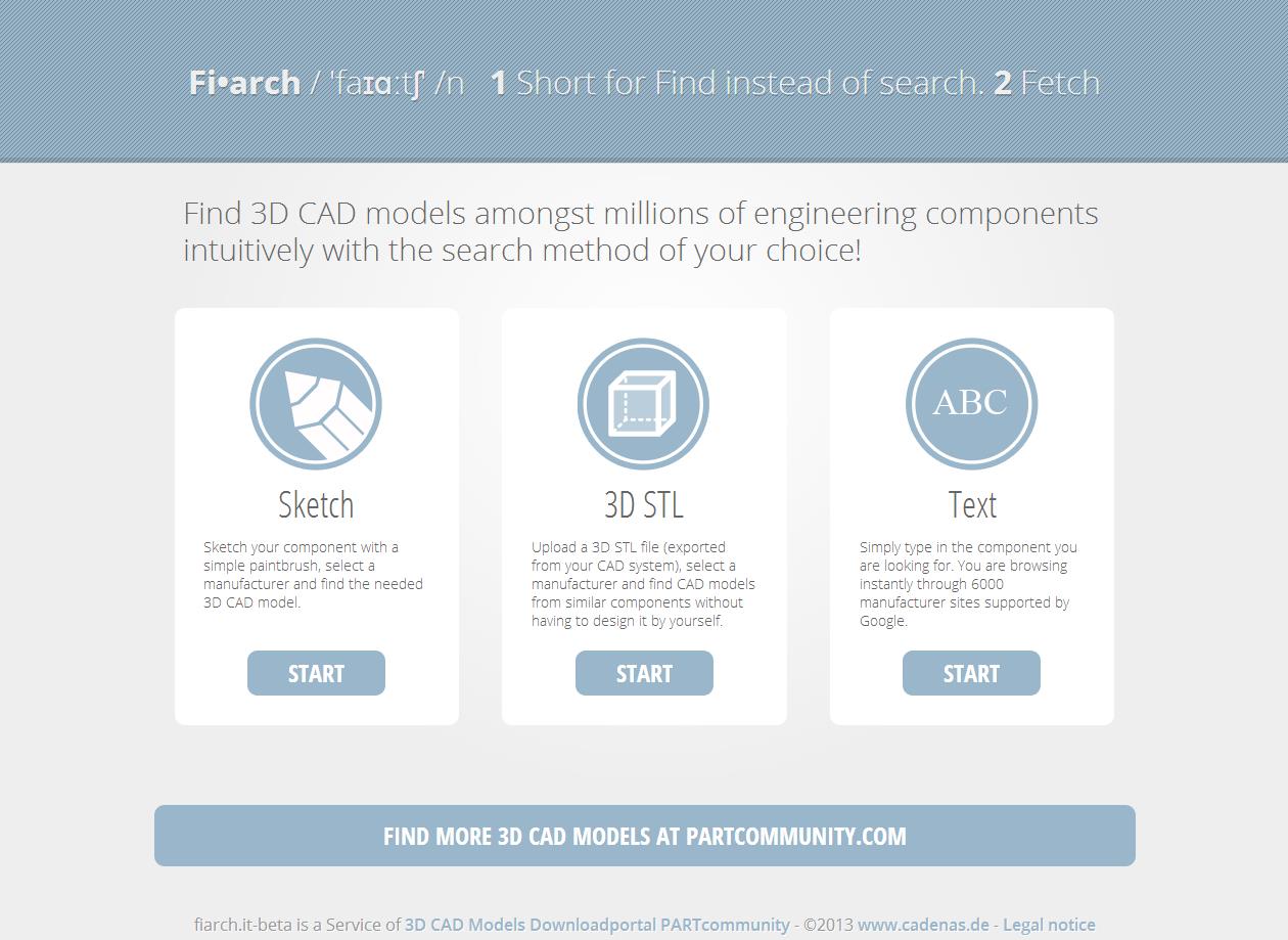 Zumindest für Ingenieure und Entwickler gibt es für solche Suchanfragen jetzt eine praktische Lösung: CADENAS, der Experte für 3D CAD Modelle und Herstellerkataloge, veröffentlichte jetzt eine Weltneuheit. Unter der URL fiarch.it wurde eine spezialisierte Suchmaschine geschaffen, die mit Hilfe intelligenter Suchmethoden Norm- und Kaufteile aufspürt.
