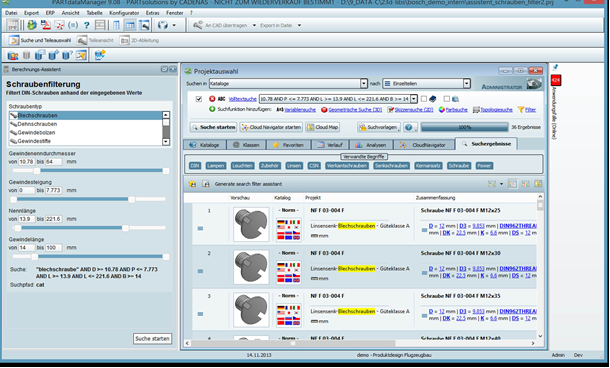 PARTsolutions Suchfilterassistent by CADENASDer neue Suchfilterassistent erlaubt dem Benutzer das schnelle Erstellen von Suchvorlagen für bestimmte Teiletypen wie Lager, Schrauben, etc. mit individuellen Suchkriterien für die einzelnen Teile mit vereinheitlichten Variablen. Dadurch wird eine einfache und gleichzeitig gründliche Suche in allen Katalogen möglich, die einen umfassenden Überblick über das gesamte Portfolio von allen Anbietern gibt.