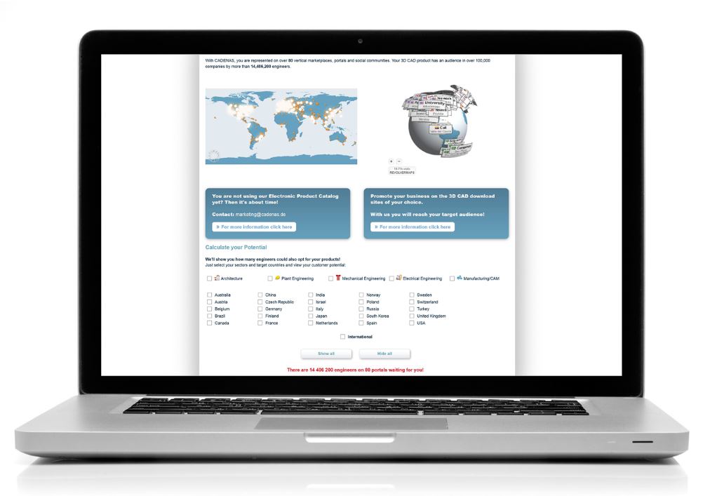 About 80 vertical online market places, constantly renewed, serve as multipliers for electronic product catalogs of the component manufacturers. With a potential of worldwide 14.4 million engineers, the 3D CAD models of the component manufacturers’ electronic product catalogs reach exactly the right target group.