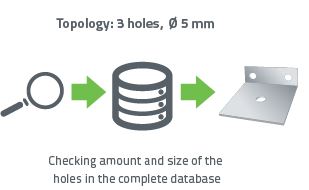 With Classification 2.0, it is possible to take part classes (e.g.: L-profiles) as well as the amount and sizes of holes into account. With a topology search the system finds in your database the exact component with the necessary drillings for your design in an uncomplicated way.