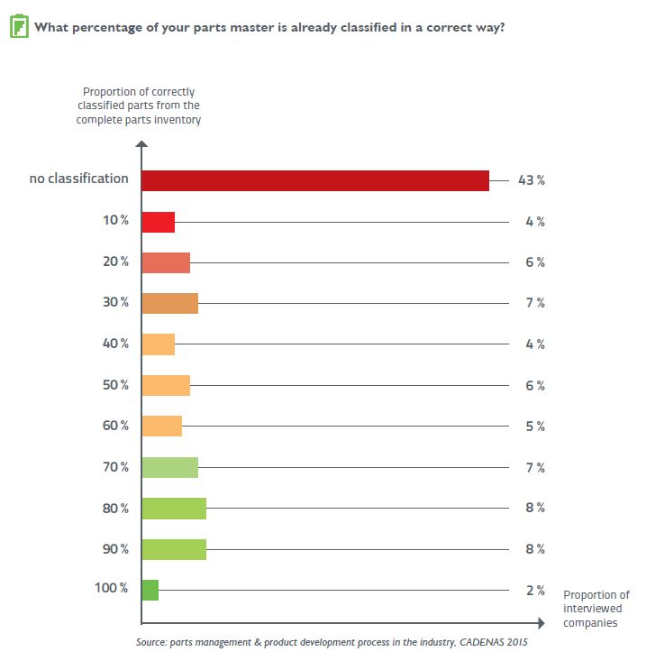 According to a survey by CADENAS, 43% of companies own no classification for their part master: