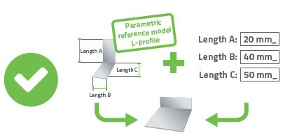 Instead of labouriously manually adding each individual component to a specific class, Classification 2.0 allows for a reference model to be set in each class by its geometrical charachteristics. If for instance, an L-profile with certain dimensions is necessary, the system looks for parts that are geometrically similar to the parametrically prepopulated reference model.