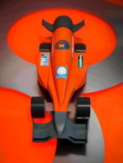 Nach ungefähr einer Stunde stand die zweite Station vor uns: das sehr begehrte Autorennen. Hier wurden die Reaktionszeit der Person, die den Rennwagen startete, und natürlich die Fahrzeit des Rennwagens vom Start bis zum Ziel gemessen. Unglücklicherweise ergab sich bei uns ein kleiner Nachteil während des Rennens. Wegen eines kleinen Konstruktionsfehlers mussten die Räder mit extra Kleber an den Achsen angebaut werden, sodass sie nicht abfallen. Nichtsdestotrotz erreichten wir eine der besten Reaktionszeiten: 1,5 ms.