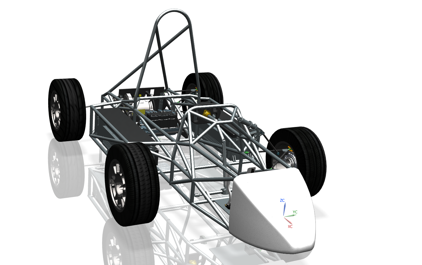 In Kürze wird das Formula Student Team CURE seinen Formelrennwagen CM-17e präsentieren. Entworfen wurde der Gesamtaufbau des Wagens mit dem CAD System NX von Siemens, während der Gitterrohrrahmen in Autodesk Inventor konstruiert wurde. Vom Beginn der ersten Konzeption bis hin zur Endmontage werden die motivierten Studenten ca. acht Monate benötigen. „Zur Entwicklung des Rennwagens haben wir bisher bevorzugt Normteile verwendet, die unser Technikteam selbst konstruiert oder aus einer Internetbibliothek heruntergeladen hat“, beschreibt Philipp Bletzer, Leiter Marketing und Finance bei CURE. „Um die Kosten zu reduzieren, haben wir die Fertigung möglichst einfach gehalten und viele Normteile eingesetzt. Denn je spezieller ein Teil ist, desto teurer wird es.“ Das Antriebssystem des Rennwagens CM-17e wird von einem Akku mit einer Maximalspannung von 410 V und einem Maximalstrom von 210 A versorgt. Über einen Inverter wird aus dieser Gleichspannung eine Dreiphasenwechselspannung erzeugt, welche einen als Mittelmotor verbauten Elektromotor antreibt.