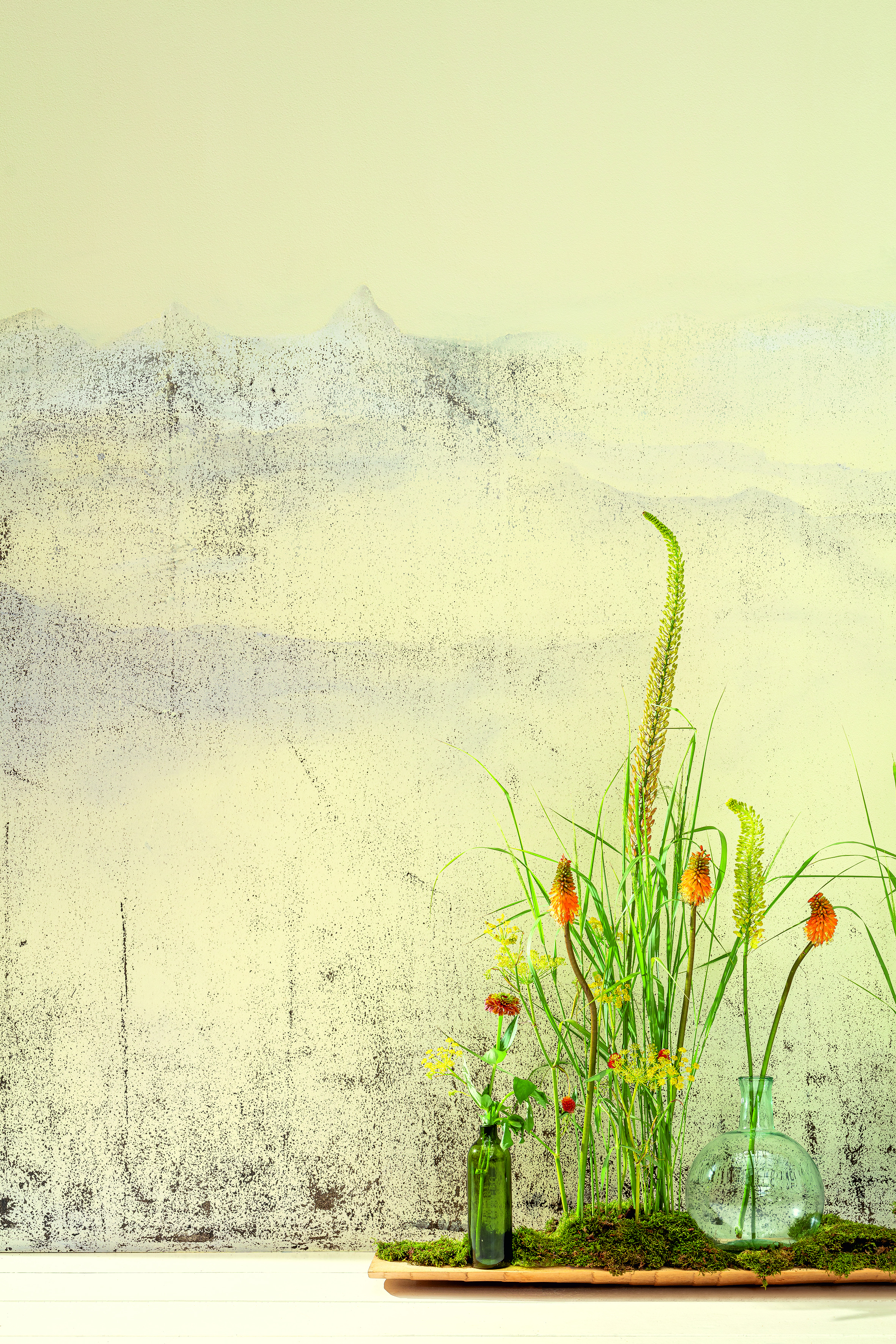 Die Farbwelten, die sich um Honig-Gold gruppieren, folgen dem Grundthema, Räumen natürliche Anmutungen zu verleihen, im besten Fall sogar die Grenze zwischen außen und innen aufzulösen. Wie das aussehen kann, zeigt das Fotoshooting für das neue Trendbuch UNIKAT #6. Als Szenerie diente ein altes Gewächshaus, das so „die Symbiose von Raum und Natur perfekt darstellt, weil Innen und Außen ganz natürlich verschmelzen“, so Andrea Girgzdies vom Caparol FarbDesignStudio.