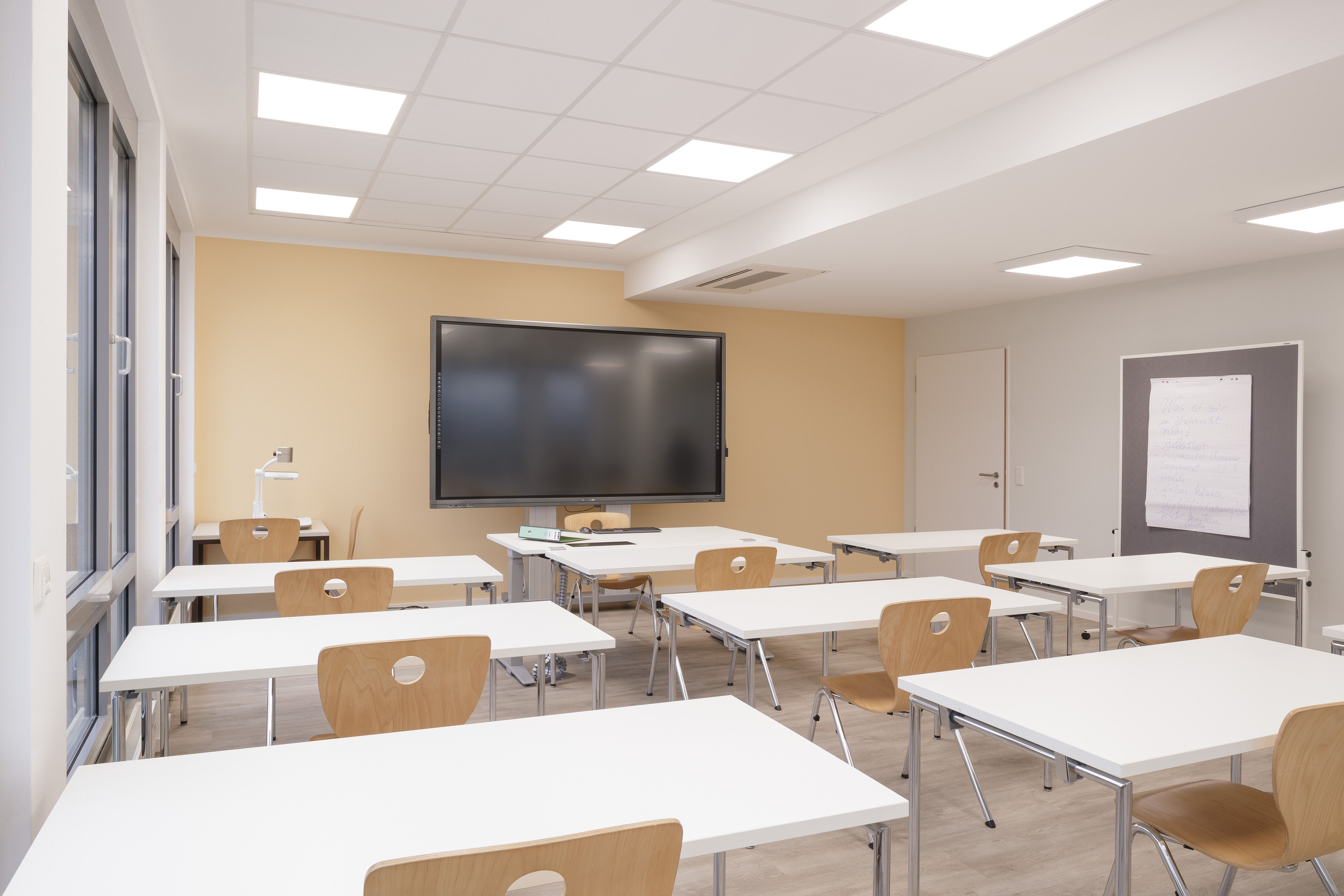 Umgesetzt wurde das Farbkonzept vom Frankfurter Unternehmen Erich Köhler GmbH, zum Einsatz kam ein Premiumprodukt mit hoher Ergiebigkeit für Innenräume: "Indeko-plus hat sich für uns schon oft bewährt – sehr hohes Deckvermögen, prima Verarbeitung", kommentiert Projektleiter Stefan Junke diese Entscheidung. Außerdem ist Indeko-plus für ihn besonders in sensiblen Bereichen die erste Wahl, da sie sowohl emissionsminimiert als auch konservierungsmittel-, lösemittel-, weichmacherfrei und geruchlos ist. Desweiteren hat der TÜV Nord Indeko-plus umfangreich geprüft und ihr das Siegel „Für Allergiker geeignet“ verliehen. Das freundliche Lern- und Arbeitsklima im BZG kann sich also auch in Sachen Raumklima messen lassen.