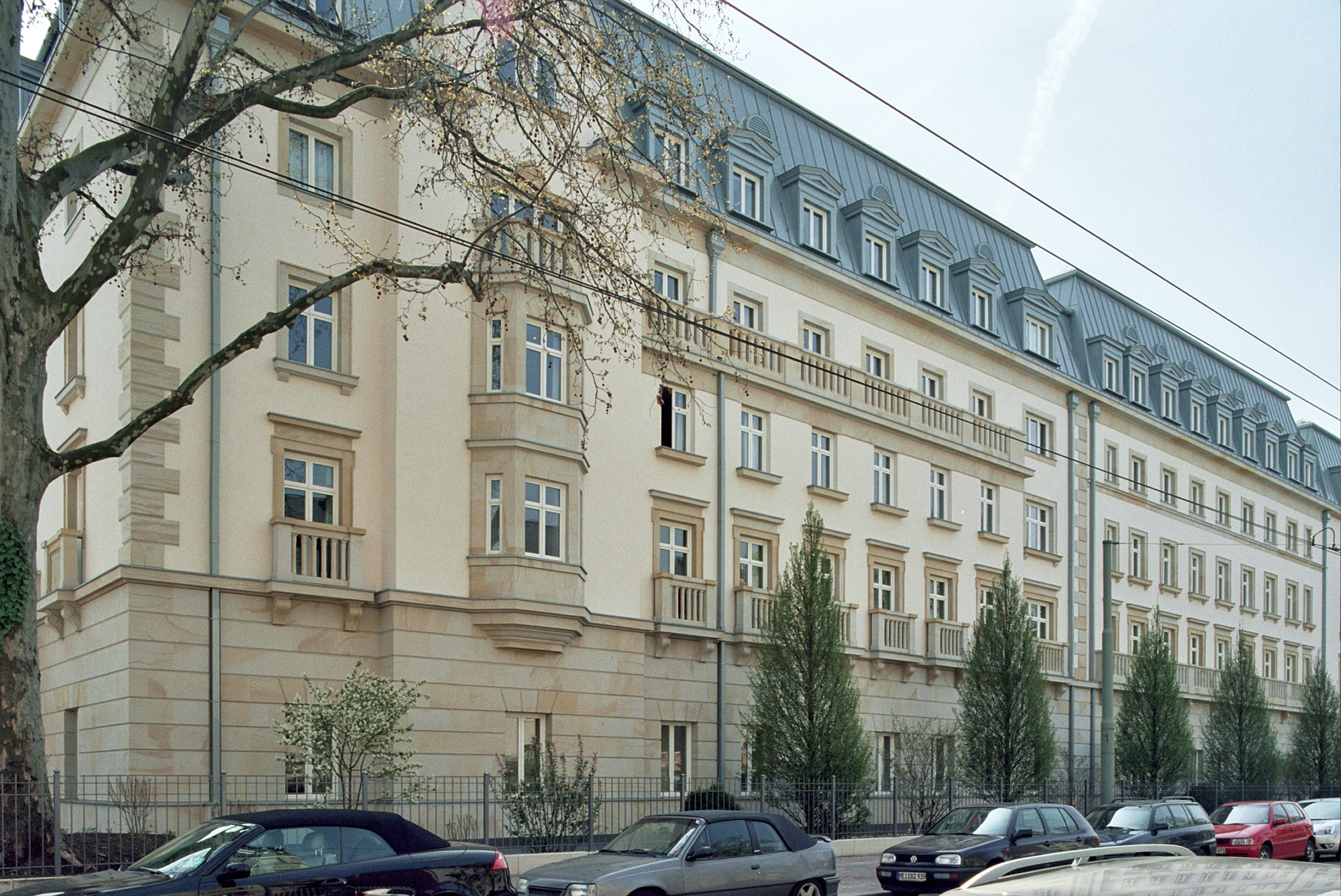 Als Executive-Architekt war die Architektengruppe GHPartner (www.ghp-architekten.de) für die Baueingabeplanung sowie die gesamte Ausführungsplanung und Bauüberwachung zuständig. Dipl.-Ing. Andreas Schling erläutert: "Auftakt und Herzstück des neuen Komplexes ist die historische denkmalgeschützte Villa Speyer, die 1904 im neogotischen Stil erbaut wurde. Sie wurde in enger Abstimmung mit der Denkmalpflege um ein Geschoß erhöht, wodurch ihre Dominanz auch nach der Fertigstellung des neuen, in weiten Teilen fünfgeschossigen Hotelkomplexes erhalten blieb. Das an ein Schloss erinnernde Hotel mit insgesamt 163 Zimmern und Suiten besitzt die mit 350 Quadratmetern Grundfläche größte Präsidentensuite Deutschlands. Sie genügt mittels Einbau von Stahlblechen und durchschusssicheren Fenstern höchsten Sicherheitsstandards.