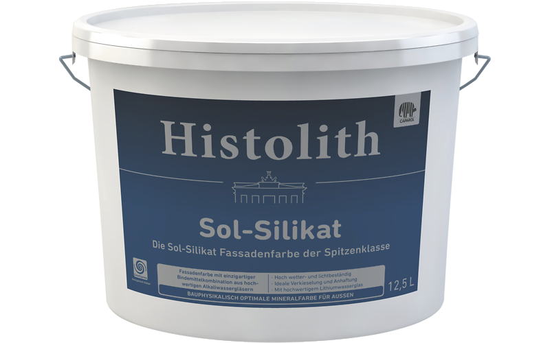 Hauptanteil an der Fassadenrenovierung hatte das Produkt Histolith Sol-Silikat, eine mineralische Fassadenfarbe mit einer neuartigen mineralischen Bindemittelkombination, die ein universelles Anwendungsgebiet ermöglicht. Der Zusatz von Lithiumwasserglas verhindert Pottasche-Ausblühungen und gestattet besonders brillante Farbtöne. Zur vorausgehenden Putzausbesserung kam ein mineralischer Feinmörtel (Histolith Renovierspachtel) zum Einsatz. Für die feine, füllende Grund- und Zwischenbeschichtung verwendeten die Maler-Profis von Bauer das Produkt Histolith Mineralin fein auf Silikatbasis.