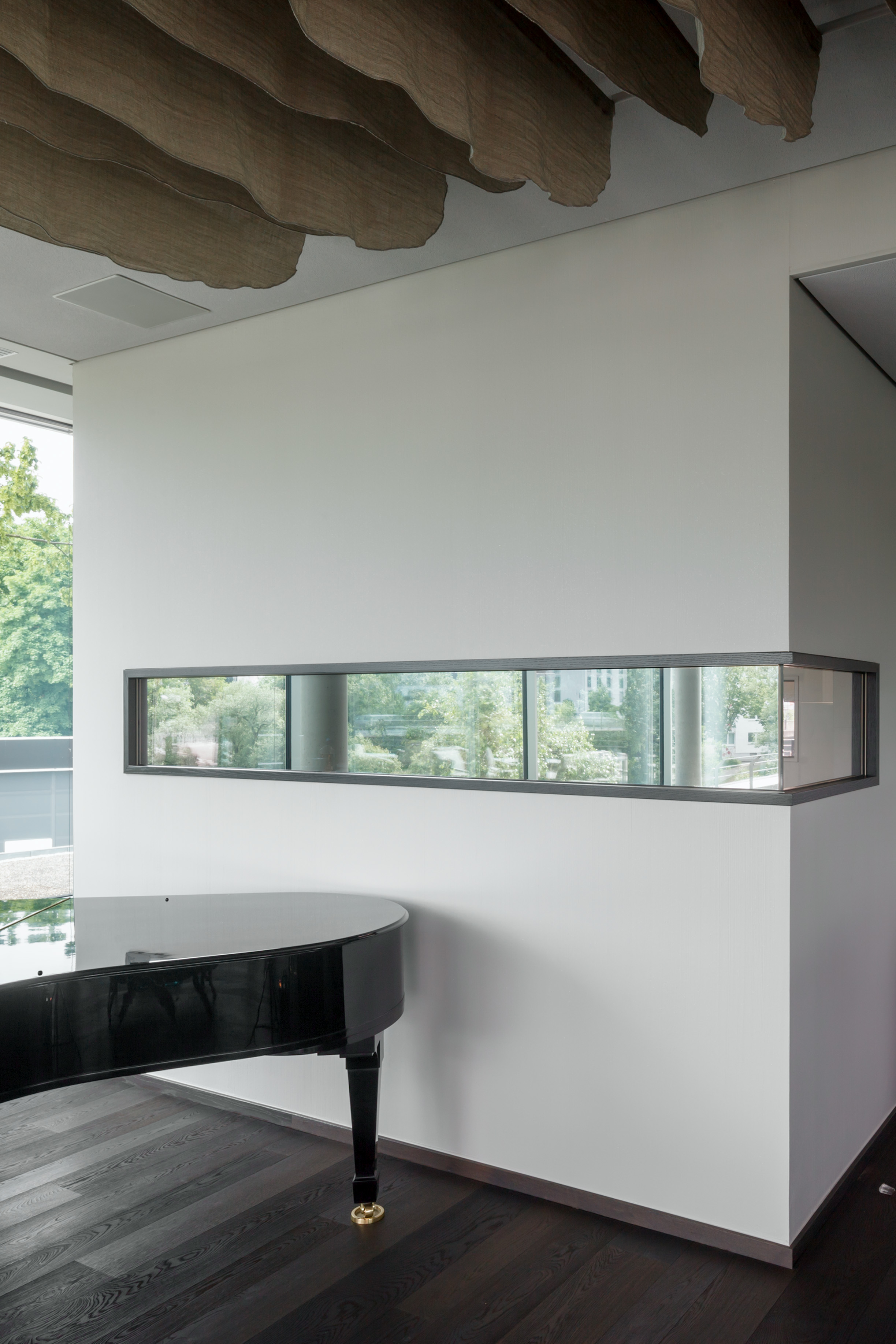 Zwar brachte das Bauprojekt einige Herausforderungen mit sich: Die Lage in einem Hochwassergebiet und ein schwieriger Baugrund direkt am Wasser etwa stellten besondere Anforderungen – es mussten 72 Pfähle im Boden versenkt werden, um das Gebäude überhaupt gründen zu können. Und auch die aufkommende Corona-Pandemie wirbelte eingespielte Abläufe durcheinander. „Das fing schon bei kleinen Details an, etwa bei den Bemusterungen. Wie demonstriert man kontaktlos per Mail den Unterschied von ‚matt‘ und ‚seidenmatt‘?“, erinnert sich Björn Lemke von Caparol lachend. „Da ist es schon einfacher, kurz mit ein paar Musterkarten vorbeifahren zu können.“ Doch trotz der besonderen Situation konnte der Neubau in einer sehr kurzen Bauzeit errichtet werden. „Die ausführenden Firmen haben die Corona-Situation supergut abgefangen, so dass das Projekt entsprechend umgesetzt werden konnte“, so Architektin Zimmer abschließend.