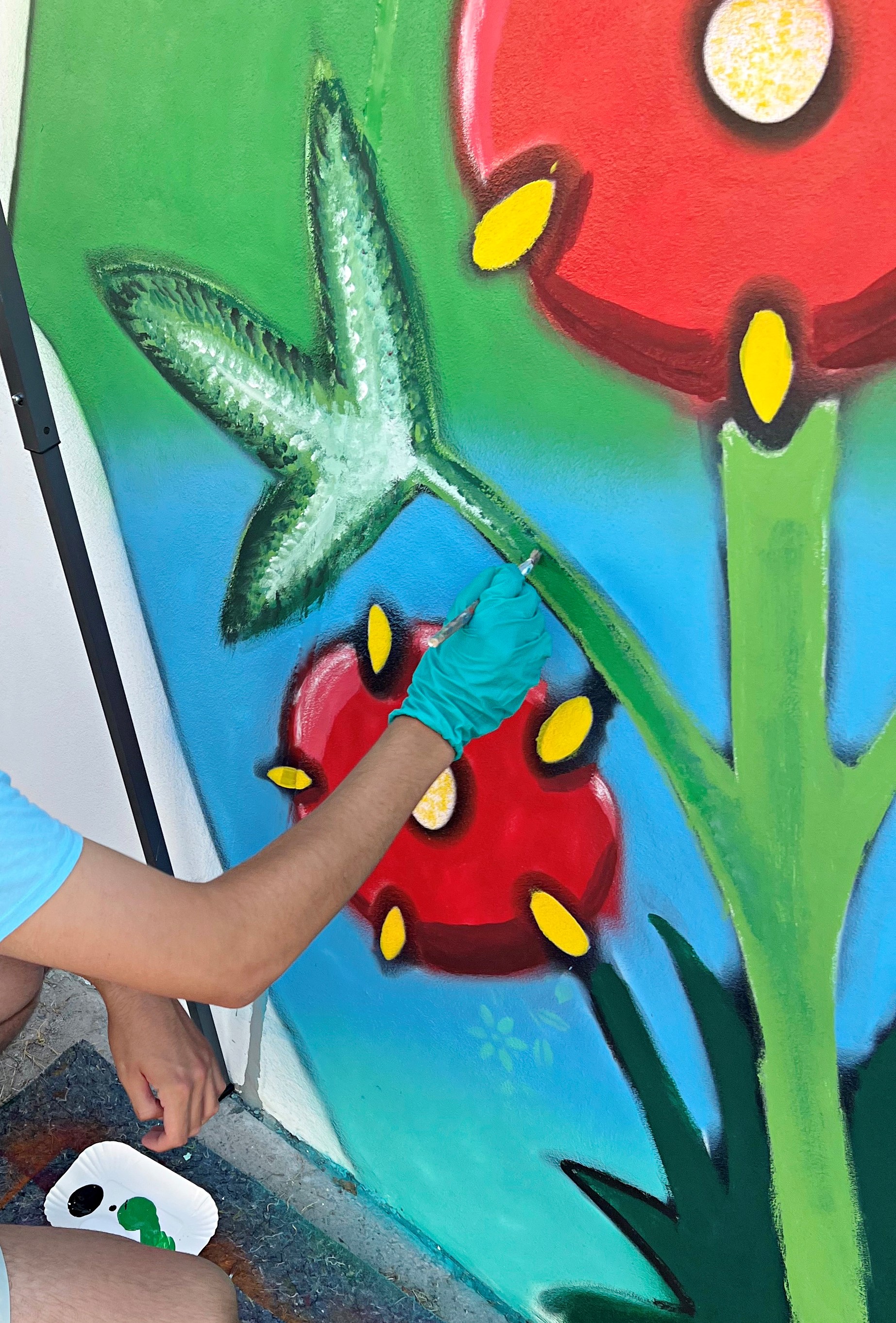 Das erste Treffen hatte schon im März stattgefunden, an drei Tagen im Juli wurde das Projekt schließlich zum Abschluss gebracht. „Anfangs waren alle heiß auf die Sprühdosen“, erzählt Heilmann, „aber ich habe ihnen Mut gemacht, den Pinsel in die Hand zu nehmen, weil man damit detaillierter arbeiten kann.“ Wichtig war ihm, dass alle Beteiligten Spaß hatten. Probleme gab es beim Malen nicht – und wenn doch, wurde das Problem kreativ umgedeutet.