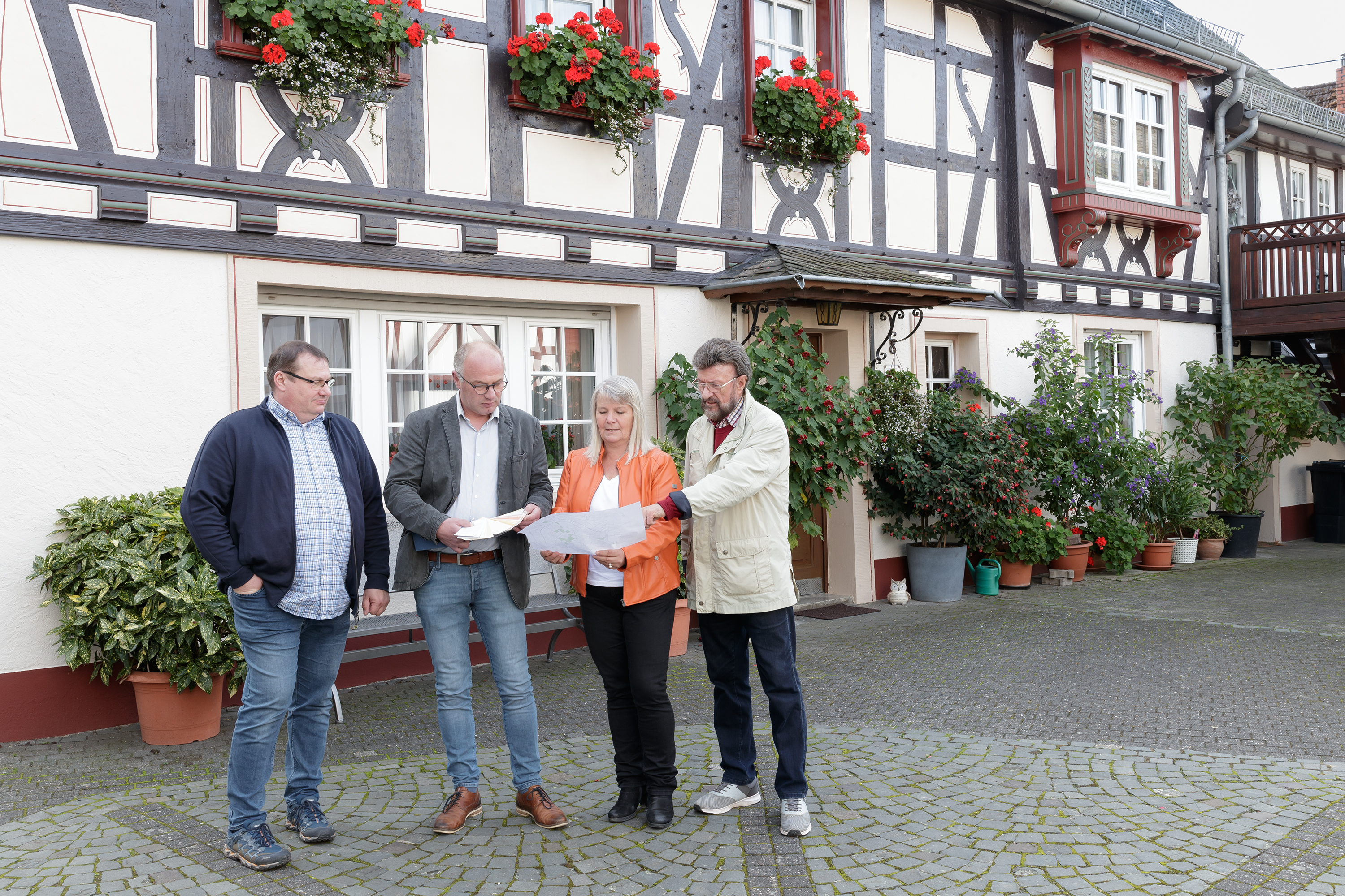 Wolfgang Hey: Ja, es hatte ein schleichender Verfall begonnen. Zwar kümmert sich das Gros der Eigentümerinnen und Eigentümer engagiert um die Häuser. Aber dem einen fehlt vielleicht das nötige Kleingeld, die andere hat mit zunehmendem Alter nicht mehr die nötige Kraft für die bauliche Pflege eines Fachwerkhauses. So waren nach 2010 zunehmend Schäden an den Fassaden zu erkennen, die teils sogar die Standfestigkeit angriffen. Deshalb habe ich die Initiative gegriffen, 2019 mit einigen Freunden den „Förderverein Historischer Ortskern Herrstein“ gegründet und die Ortsgemeinde involviert.
