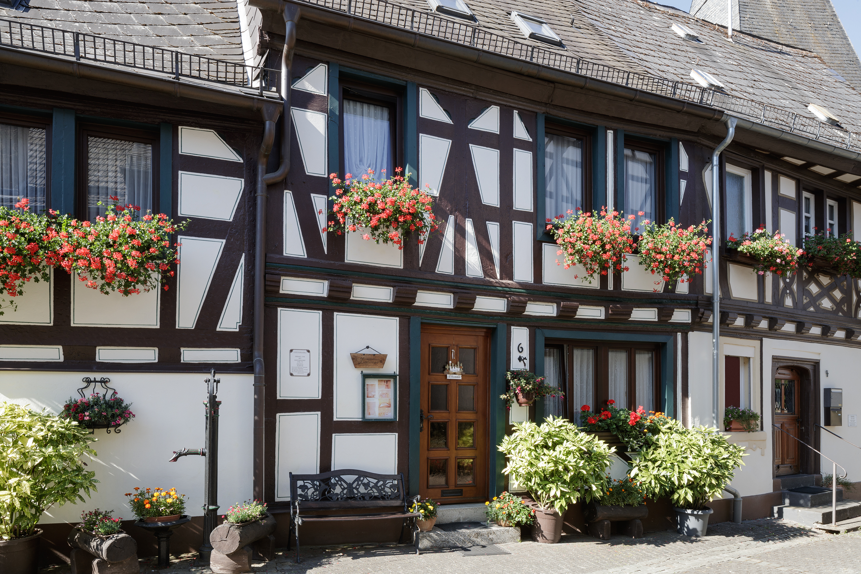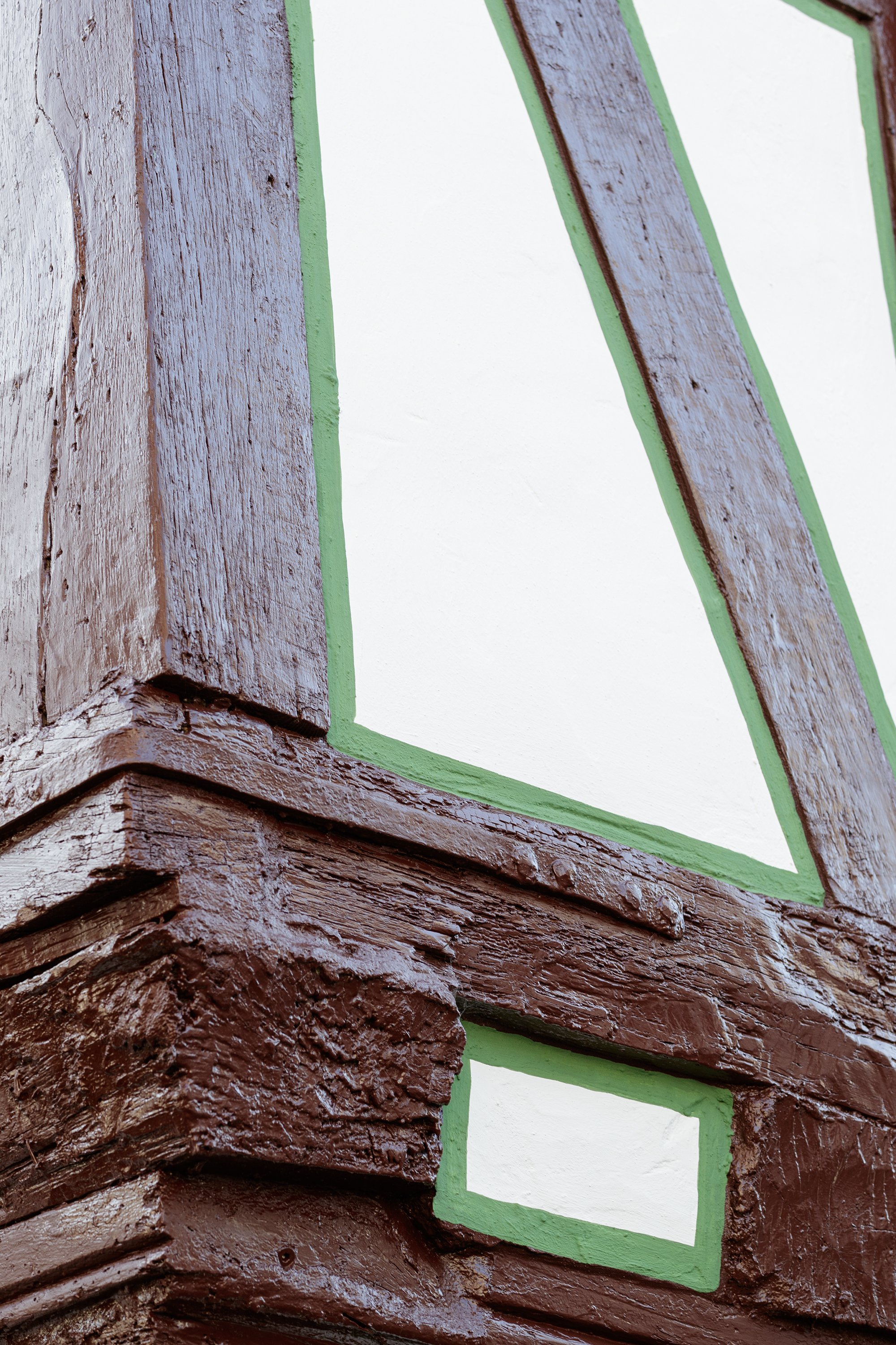 „Den damaligen Zustand der Fachwerkhäuser in Herrstein würde ich als ‚von-bis‘ bezeichnen", erzählt Malermeister Ingo Nolde vom Malergeschäft Schüller GmbH. „Einige Gebäude brauchten einfach einen Überholungsanstrich. Bei anderen mussten wir ganze Gefache erneuern. Auch Feuchtigkeit war ein großes Thema." Seit April 2021 arbeitet Nolde mit seinem Team von Malerinnen und Malern an der Rettung von insgesamt 31 historischen Gebäuden in der Hunsrückgemeinde. Eine echte Mammutaufgabe. Um das Mega-Projekt zu stemmen, hat die Firma Schüller mit der Pfeiffer KG deshalb auch einen Nachunternehmer zur Unterstützung ins Boot geholt, die Betriebe teilen sich die Arbeiten auf. Voraussichtlich im Spätsommer 2023 wird die Rettung des historischen Ortskerns abgeschlossen sein.